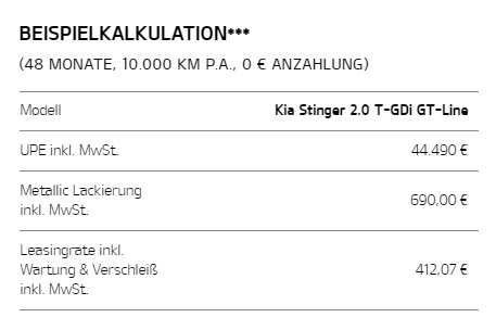 Sonderleasing, Sonderzahlung € 3.749,-, 48 Monatsraten à € 127,-, Laufleistung 40.000 km |