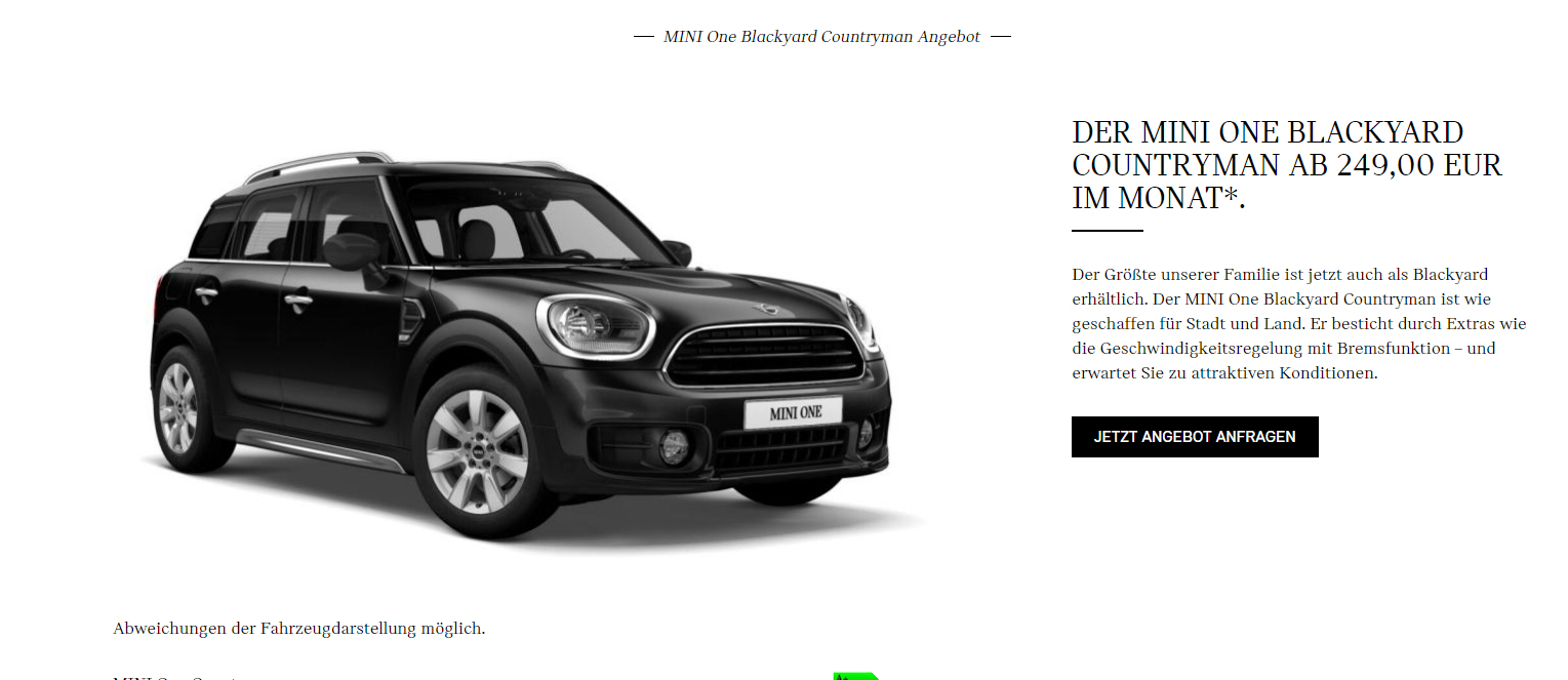Sondermodell, Sonderleasing, Sonderzahlung € 499,-, 36 Monatsraten à € 249,-, Laufleistung 30.000 km |