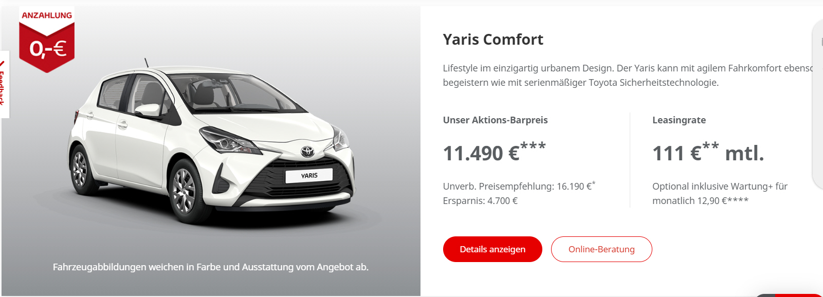 Sondermodell, Aktions-UPE, Sonderleasing für Gewerbetreibende, Garantie und Wartung inkl. |