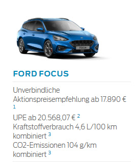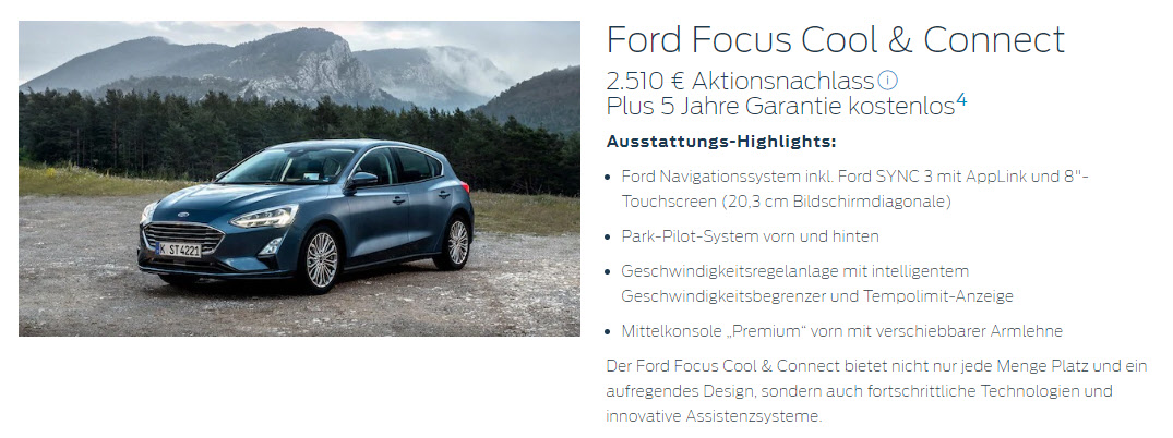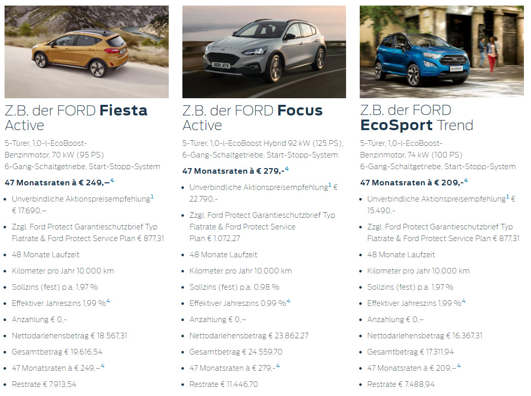 Aktions-UPE, Ford Flatrate, Optionsfinanzierung, Wartungen und Garantie inkl. |