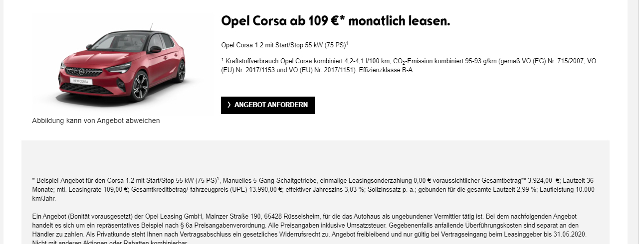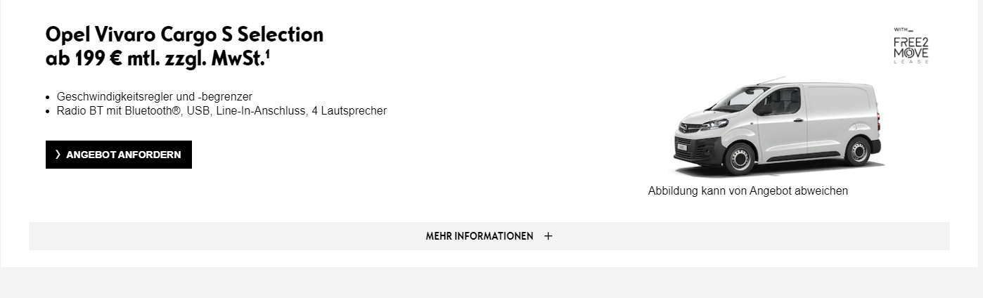 Wartung kostenlos bei Finanzierung oder Leasing, ein Monat Versicherung kostenlos |
