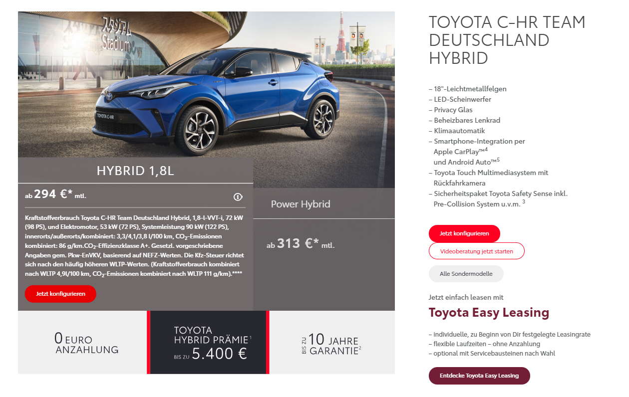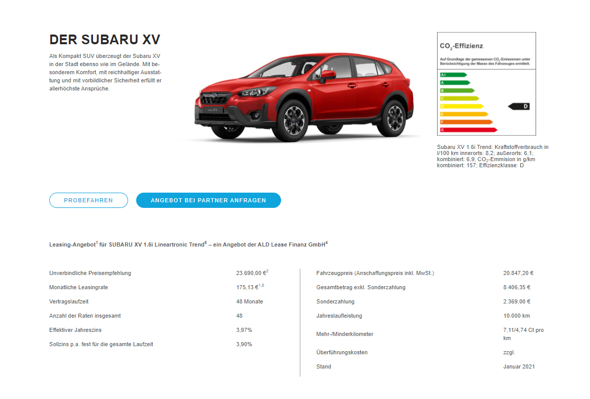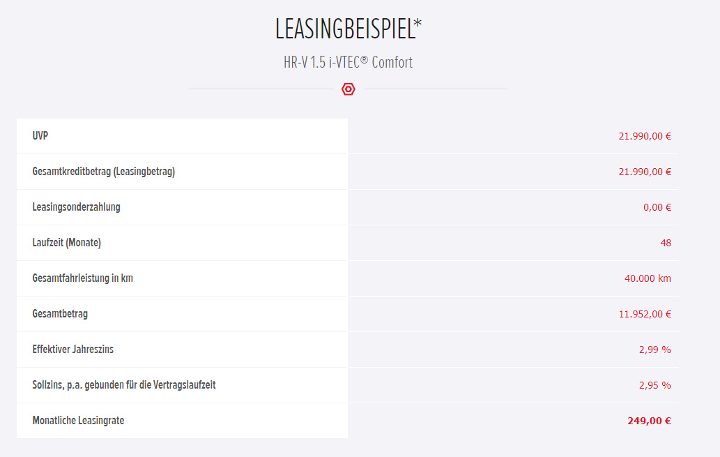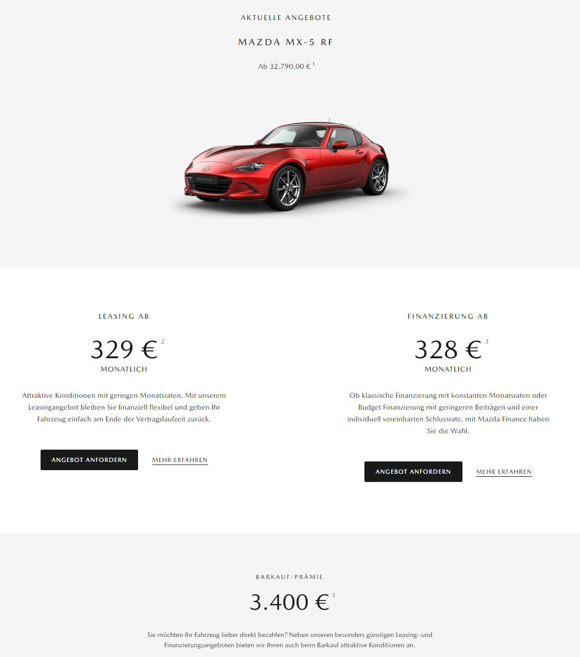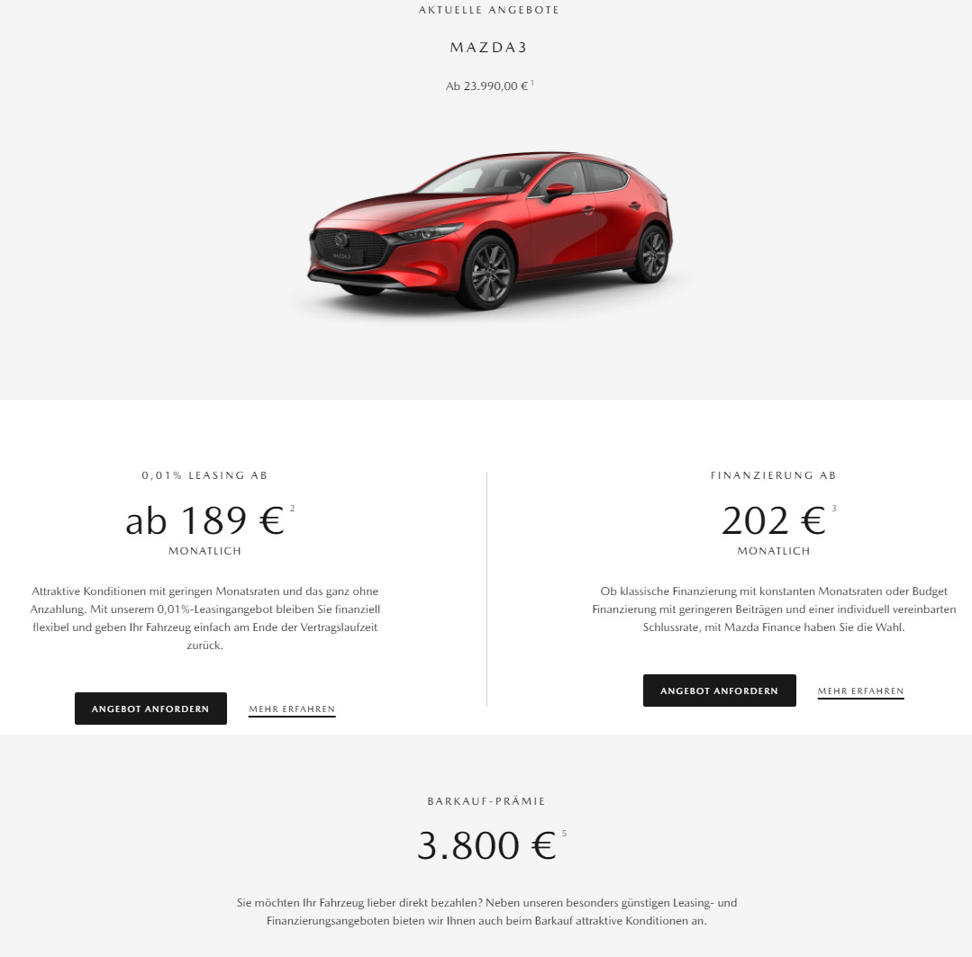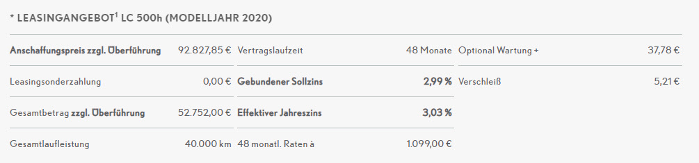 Sonderleasing, Inzahlungnahmeprämie, Wartung optional für € 32,37 pro Monat, Verschleiß optional für € 5,21 pro Monat |