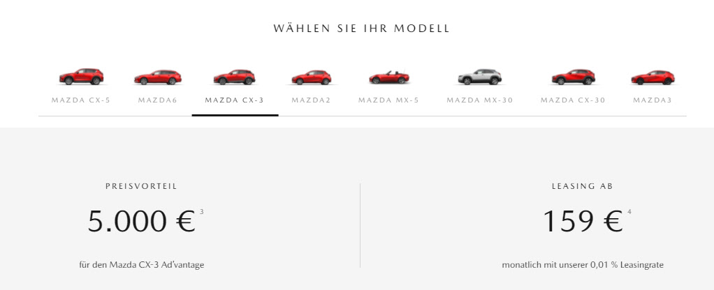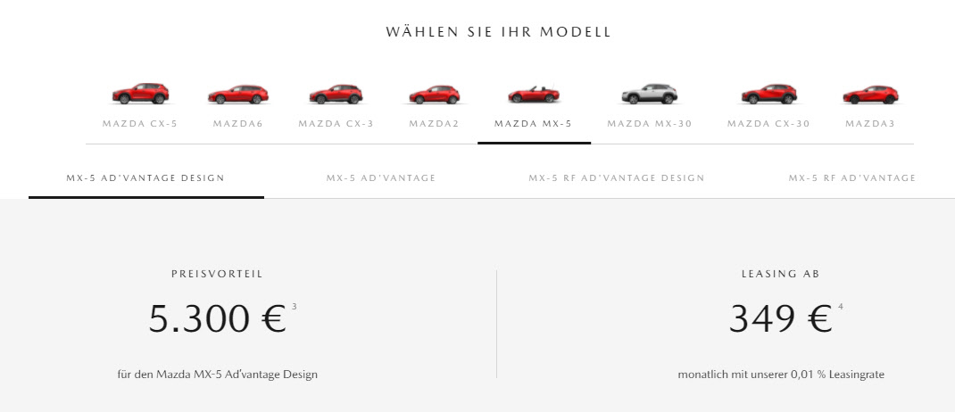 Sonderleasing, Inzahlungnahmeprämie, Wartung optional für € 33,09 pro Monat, Verschleiß optional für € 5,21 pro Monat |