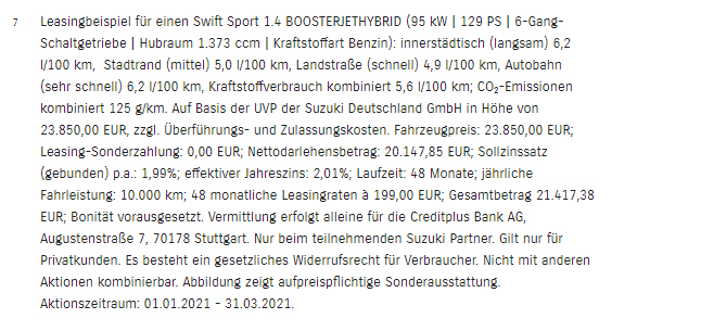 Sonderleasing, Wartung optional für € 39,62 pro Monat, Verschleiß optional für € 5,21 pro Monat |