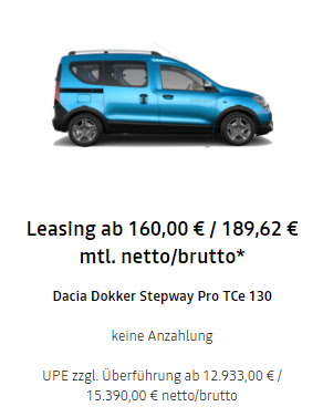Sonderleasing für Gewerbetreibende, Rate entspricht 0,8 % der UPE |