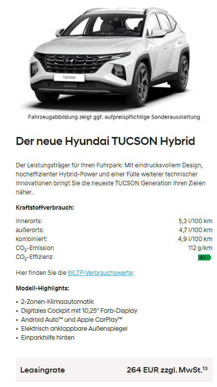 Sonderleasing für Gewerbetreibende, Wartung und Reifen-Clever optional für € 68,94 monatlich |