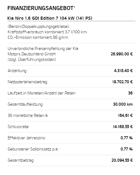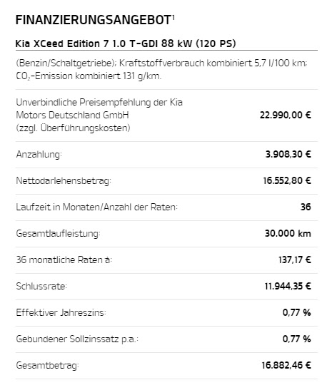 Fahrzeug-Miete inkl. KFZ-Steuern, Versicherung, Wartung, Winterräder, Hol- und Bring-Service, Mietzeit 36 Monate |