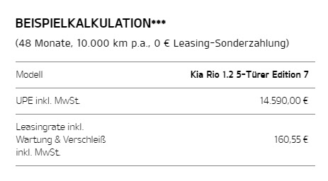 Sonderleasing, Wartung optional für € 9,90 pro Monat |