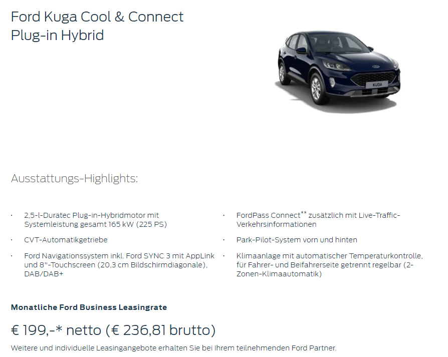 Fabrikatsnachlass bei staatlicher Kaufprämie für Plug-in Hybride, Sonderleasing |