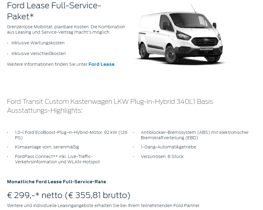 Sonderleasing für Gewerbetreibende, Fabrikatsnachlass bei staatlicher Kaufprämie für Plug-in Hybride, Wartung inkl. für monatlich € 13,45 brutto |
