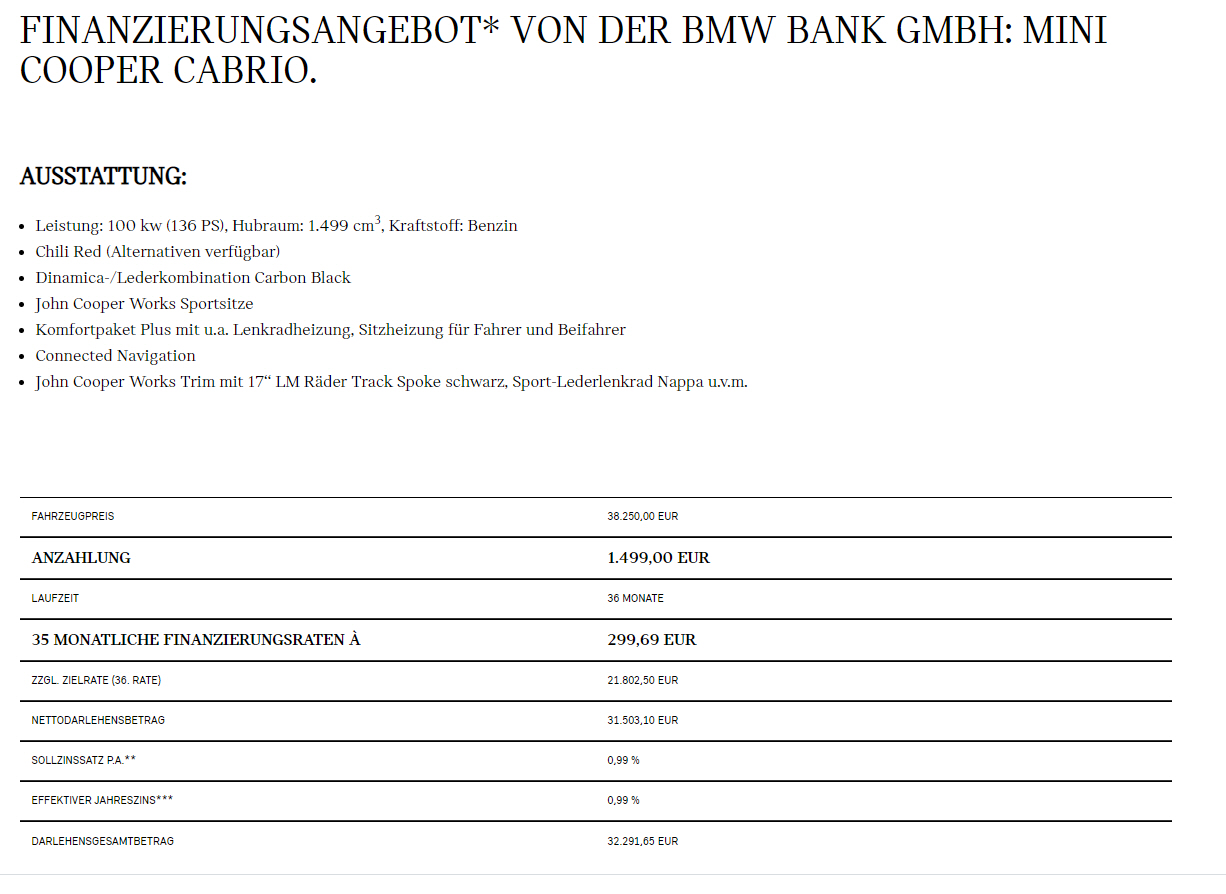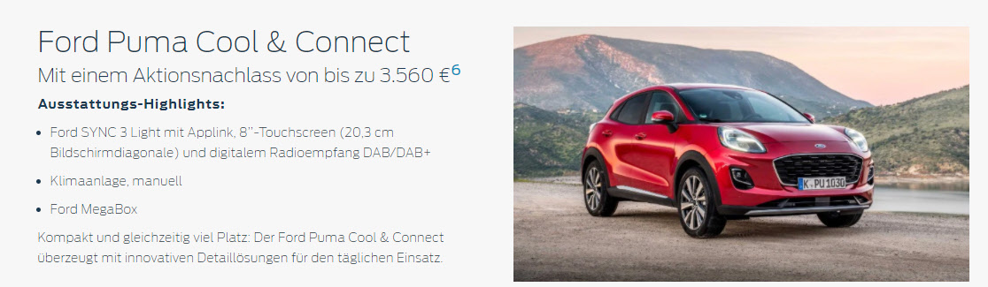 Sondermodell, Garantie kostenlos, 6 Monate KFZ-Versicherung, Wartung, Hol-und Bring-Service und € 400,- Cash-Back bei Kauf von Zubehör in 90 Tagen nach FZ-Kauf optional für € 9,99 im Monat |