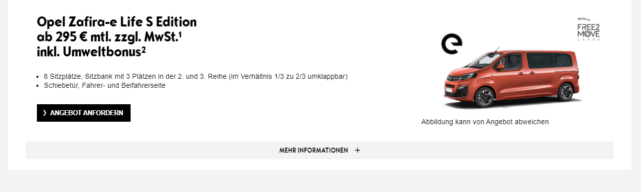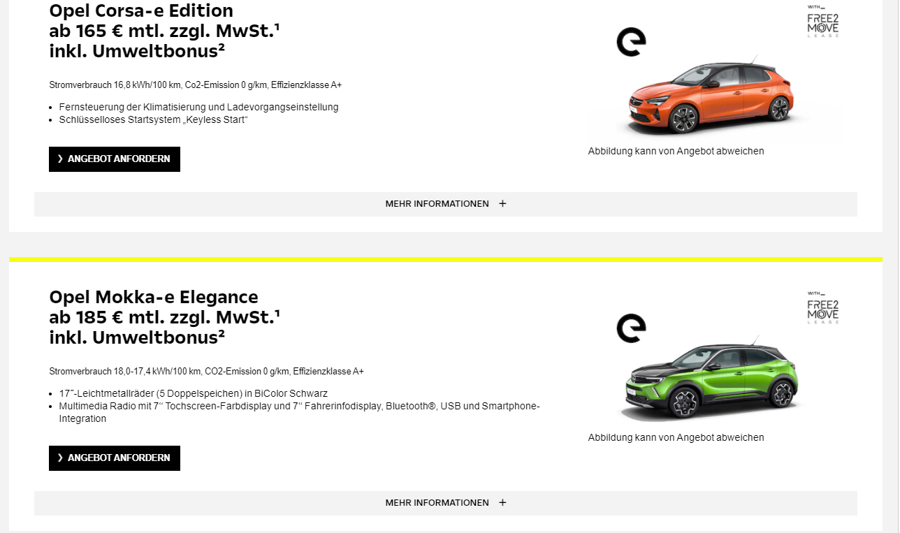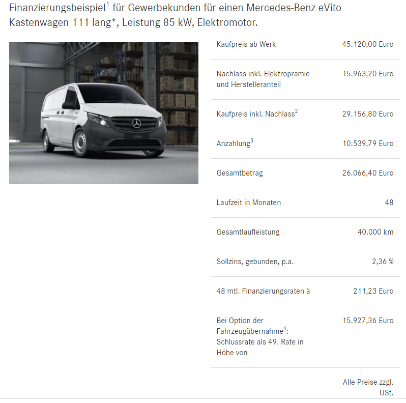 Fabrikatsnachlass bei staatlicher Kaufprämie für Elektrofahrzeuge, Sonderleasing für Gewerbetreibende |