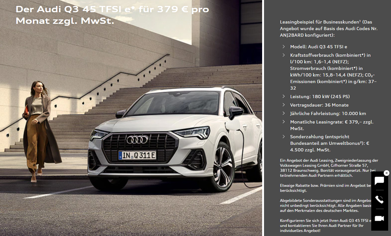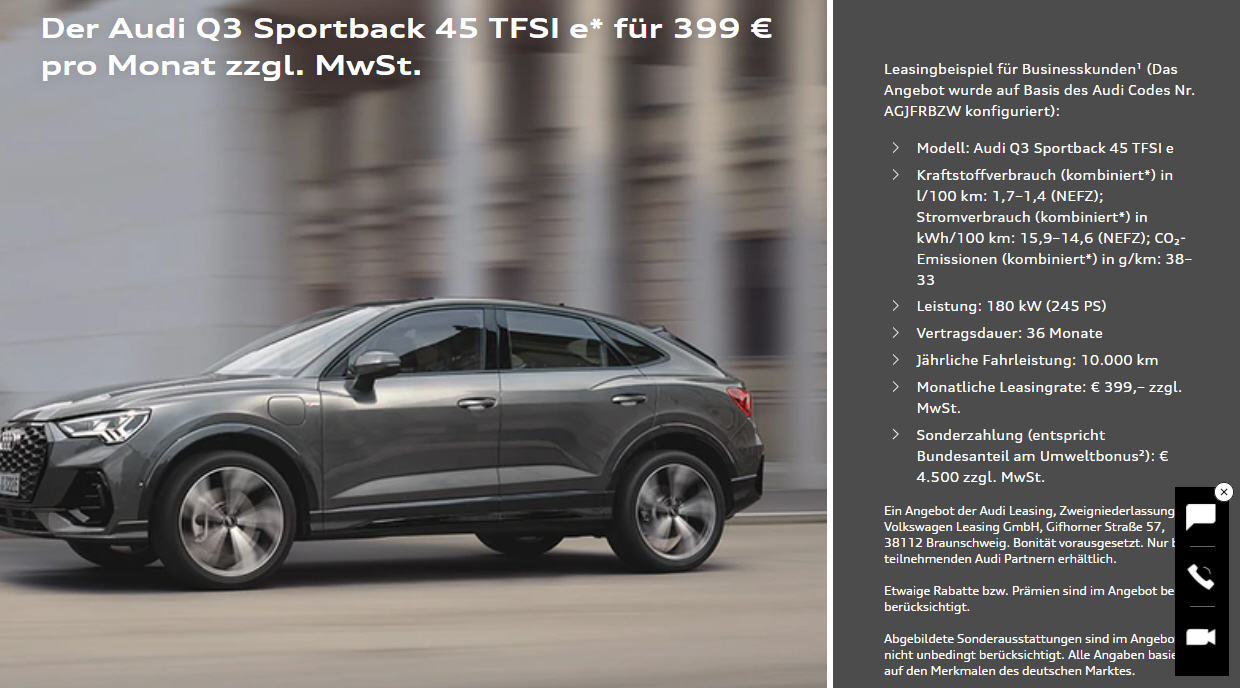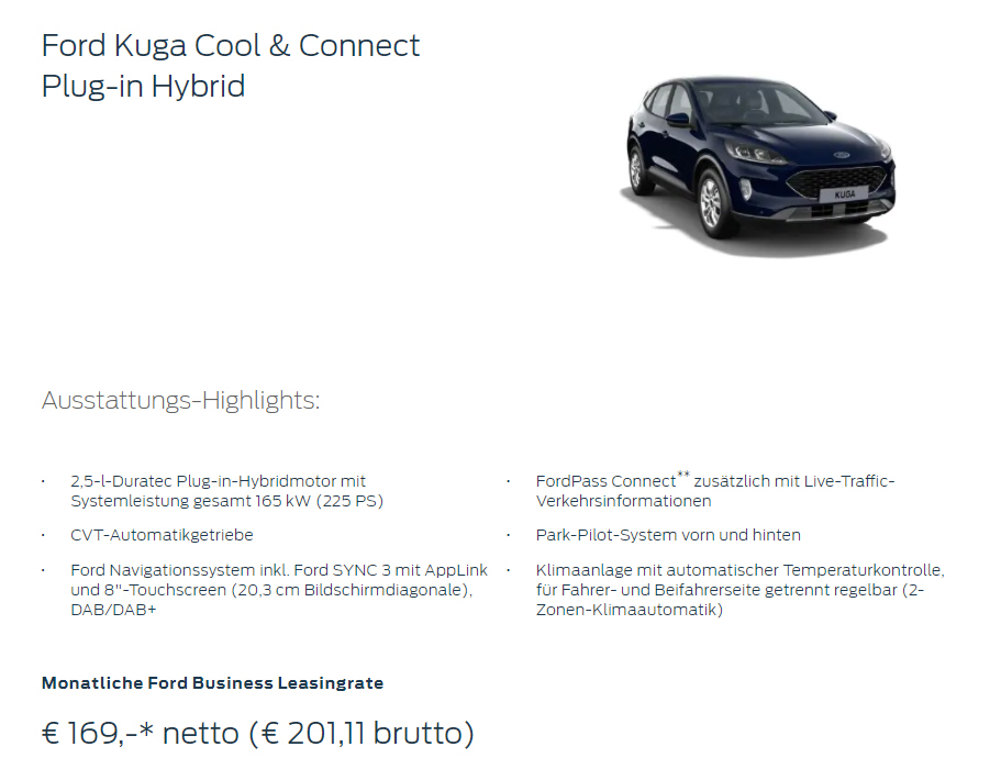 Fabrikatsnachlass bei staatlicher Kaufprämie für Plug-in Hybride, Sonderleasing für Gewerbetreibende |