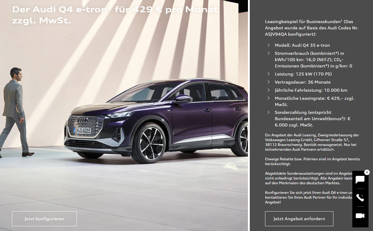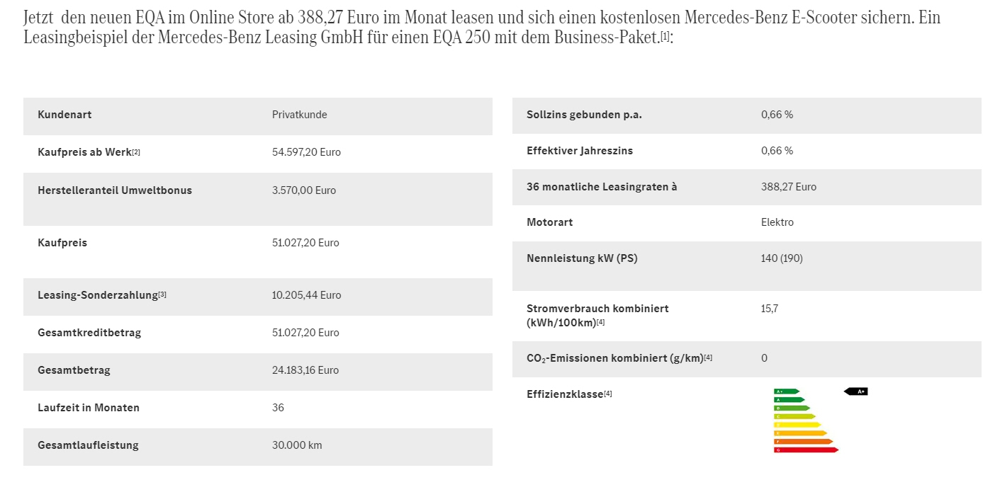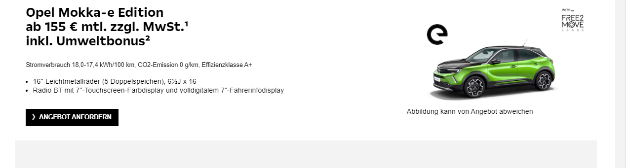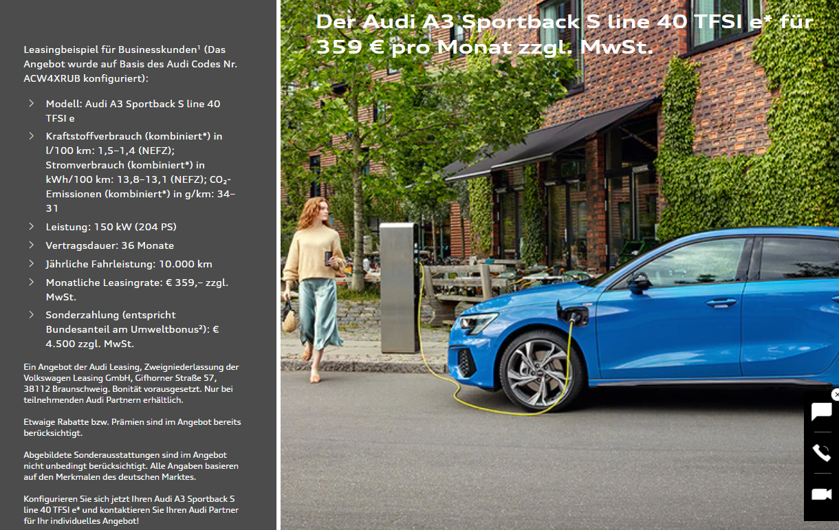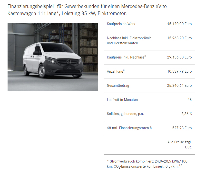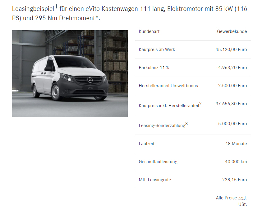 Fabrikatsnachlass bei staatlicher Kaufprämie für Elektrofahrzeuge, Sonderleasing für Gewerbetreibende |