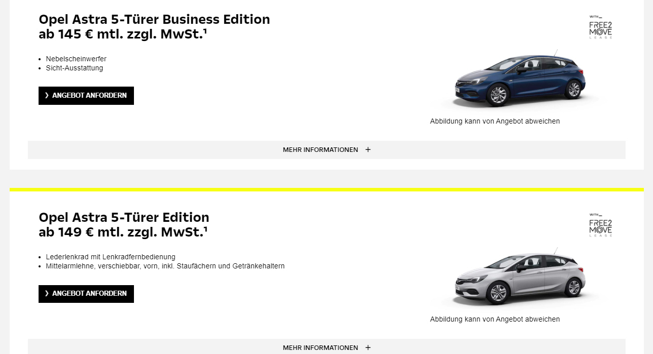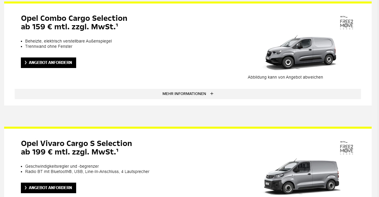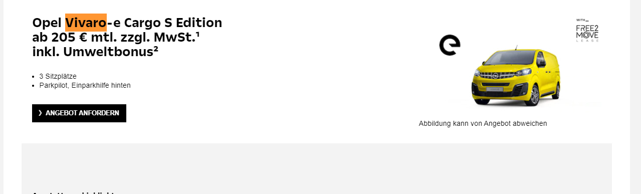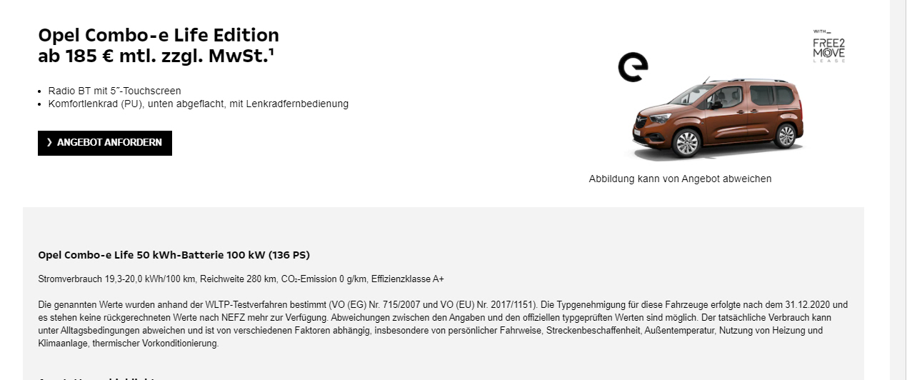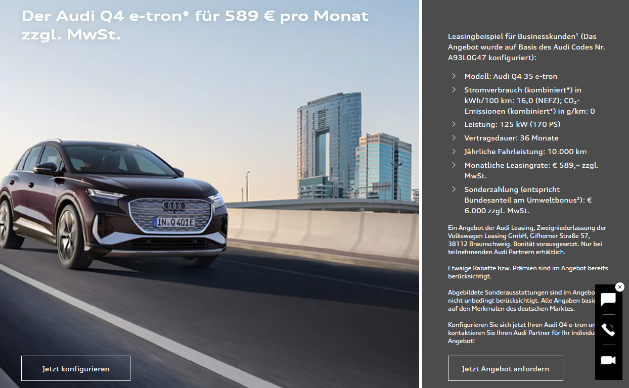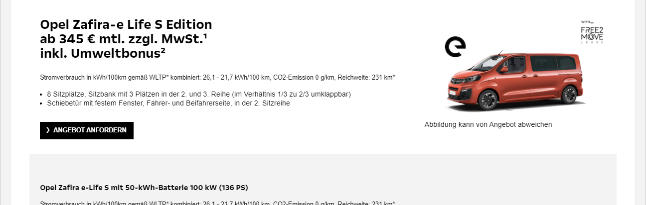 Fabrikatsnachlass bei staatlicher Kaufprämie für Elektrofahrzeuge, Sonderleasing für Gewerbetreibende |