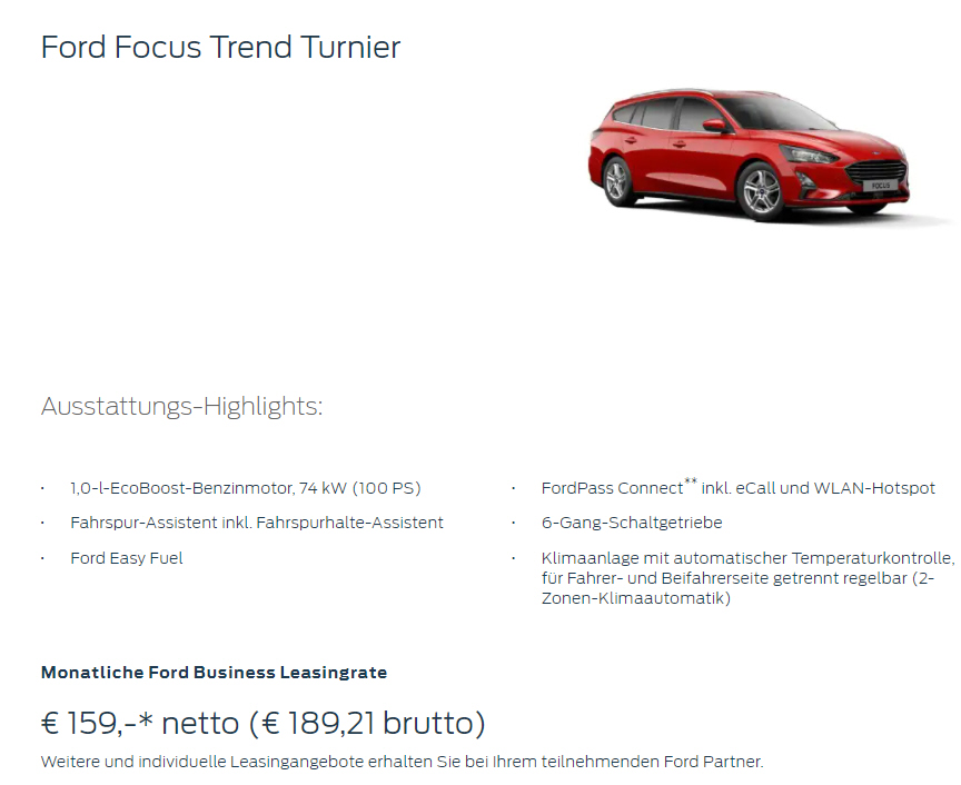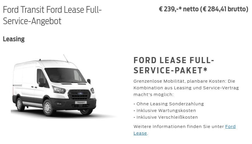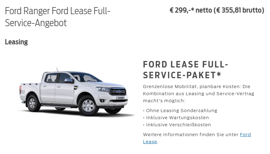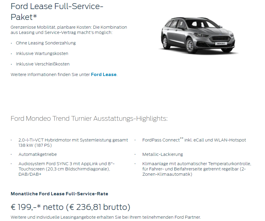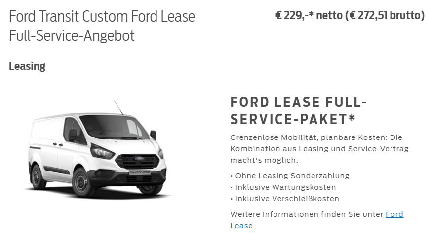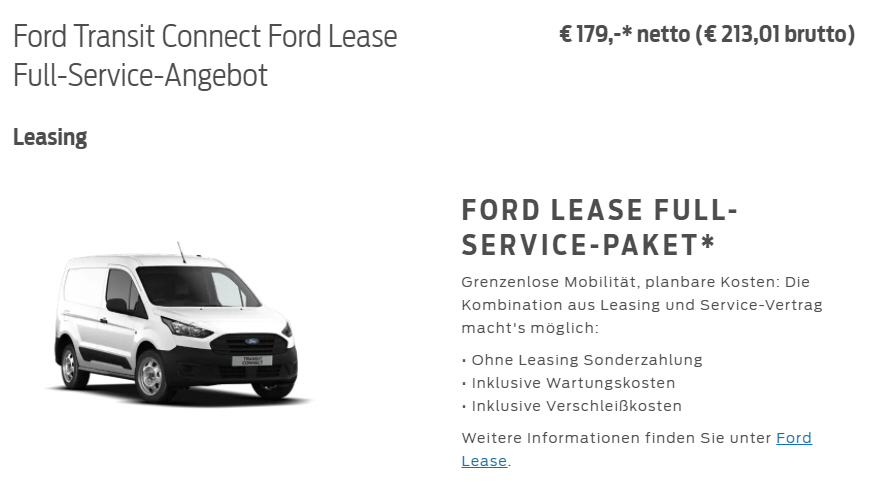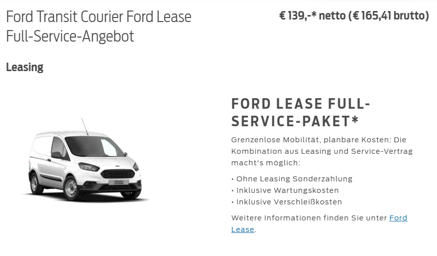 Sonderleasing für Gewerbetreibende, Wartung inkl. für monatlich € 13,20 brutto |