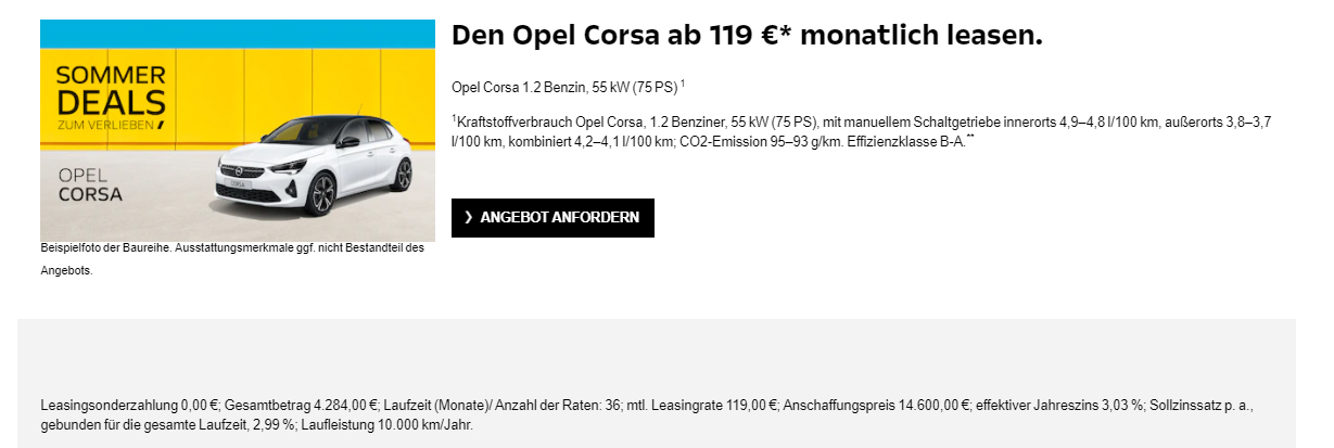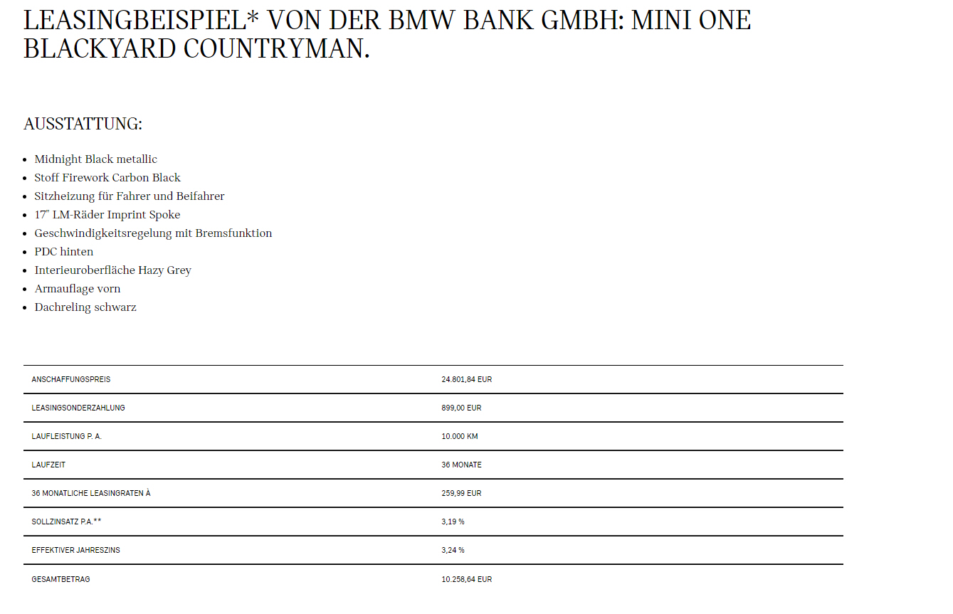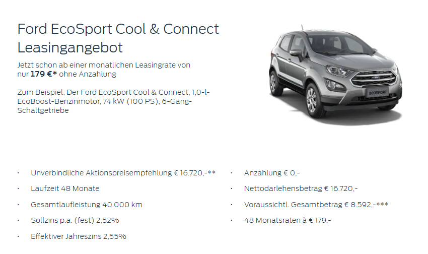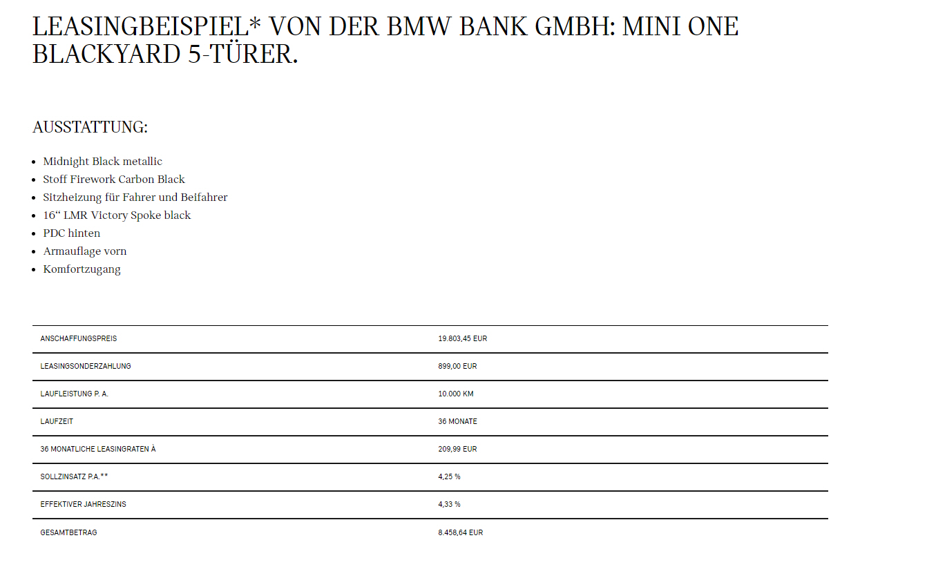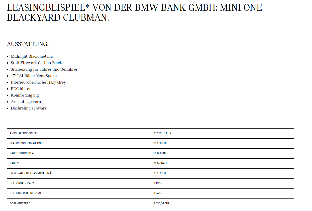 Sonderleasing für Gewerbetreibende, Wartung inkl. für monatlich € 13,20 brutto |