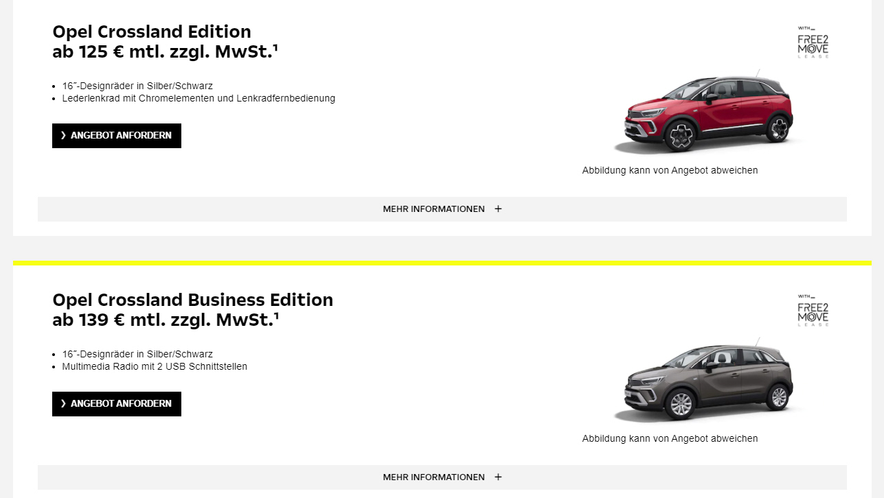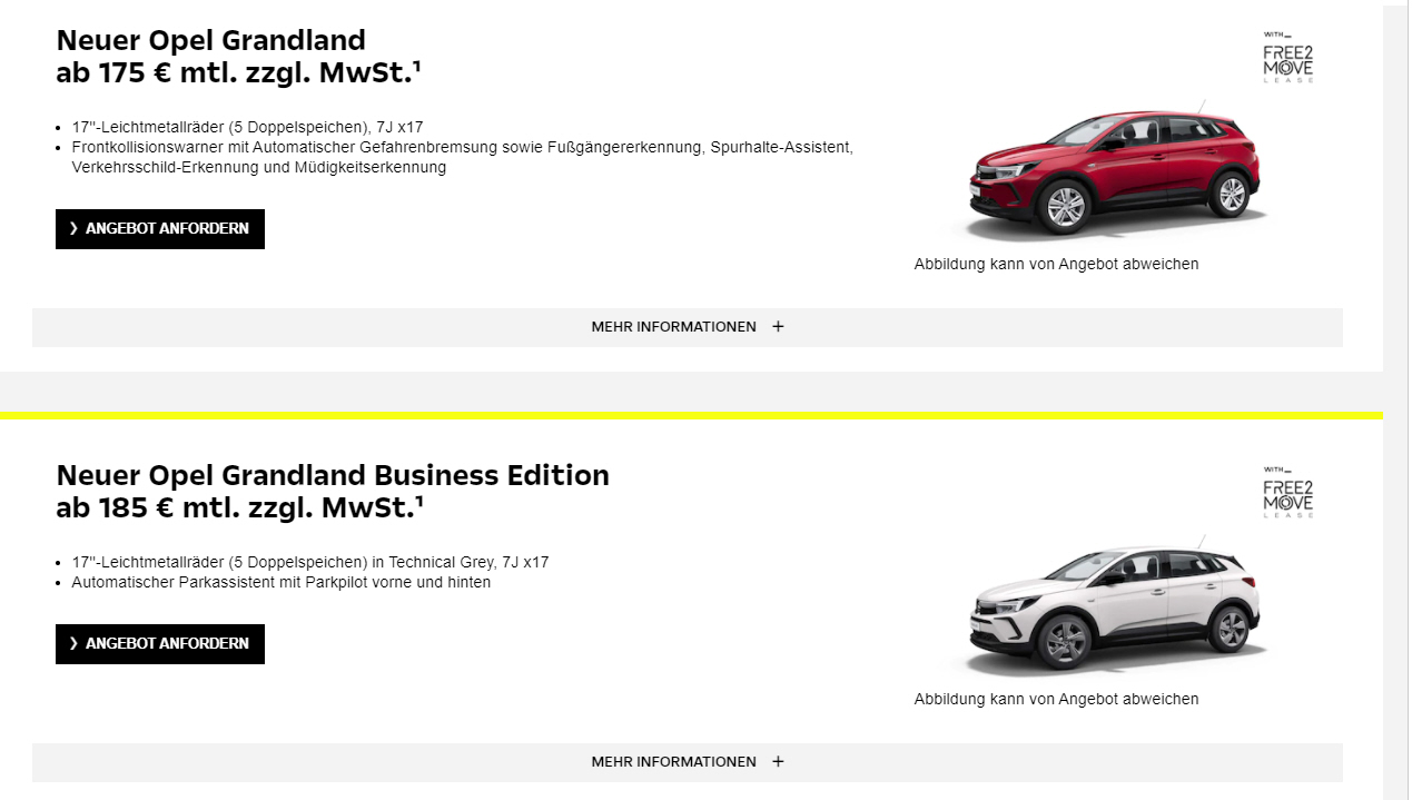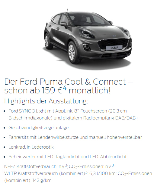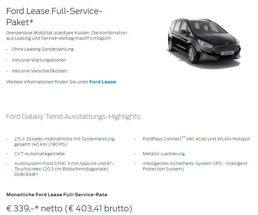 Flatrate+ (Garantieverlängerung, Mobilitätsgarantie, Wartung und Verschleiß) bei 15.000 km pro Jahr für € 15,- monatlich |