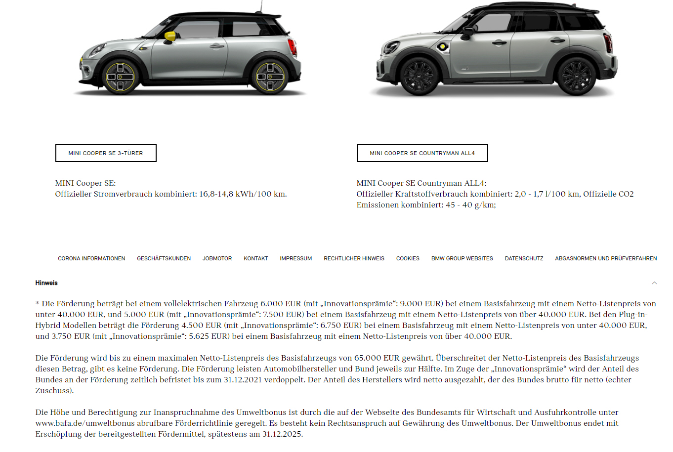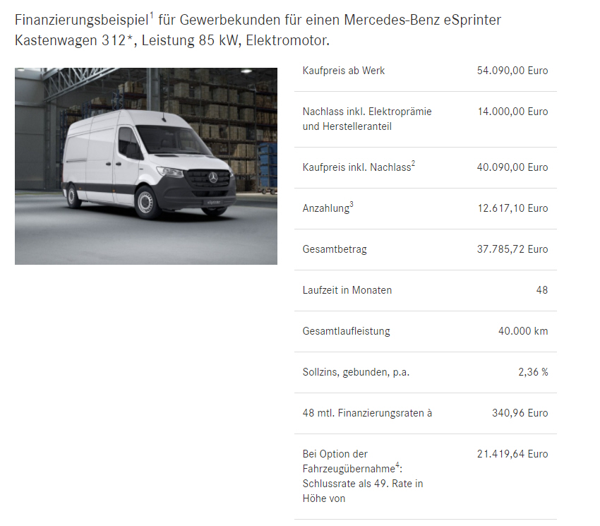 Fabrikatsnachlass bei staatlicher Kaufprämie für Elektrofahrzeuge, Schlussratenfinanzierung |
