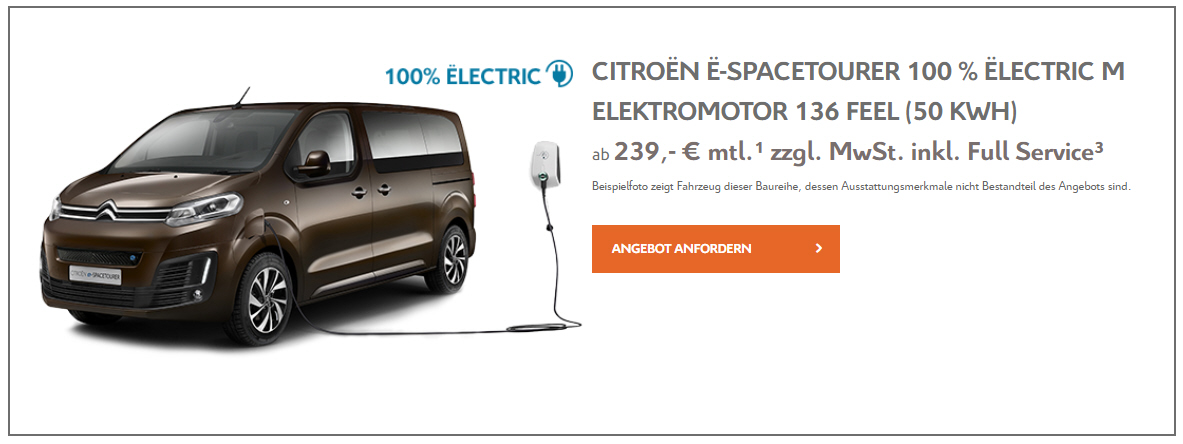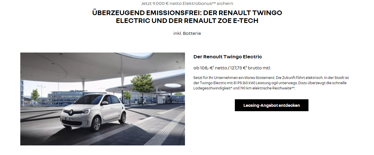 Fabrikatsnachlass bei staatlicher Kaufprämie für Elektrofahrzeuge, Sonderleasing für Gewerbetreibende, Wartung inkl. |