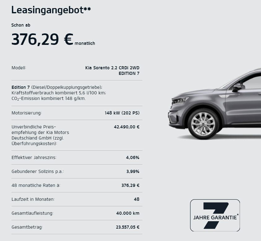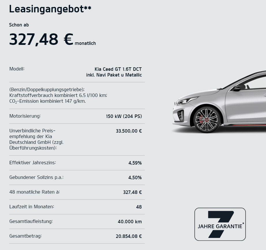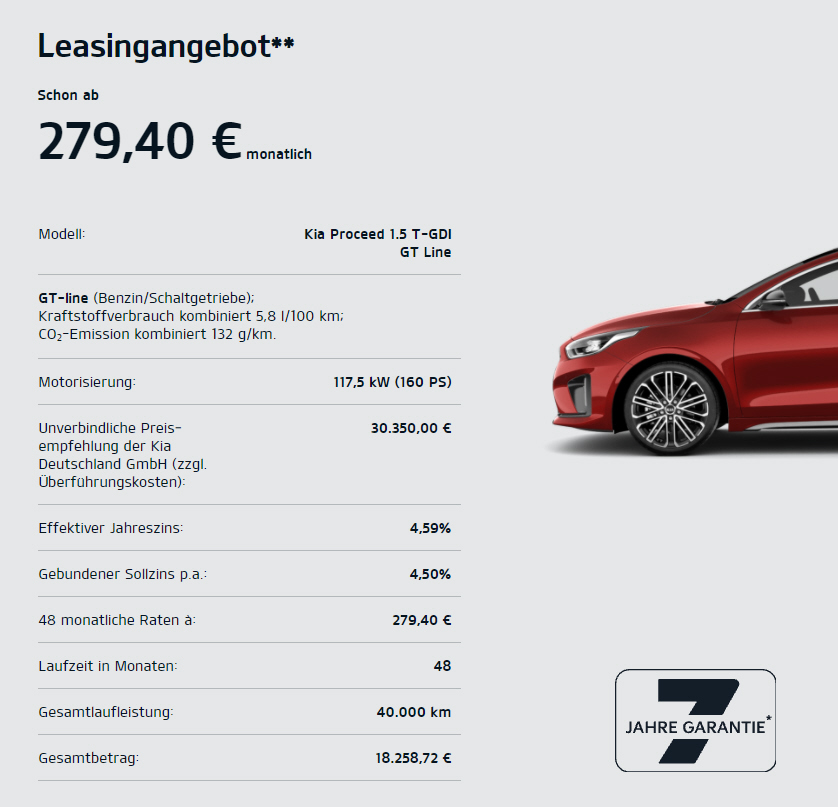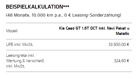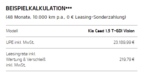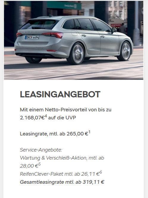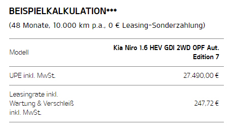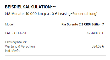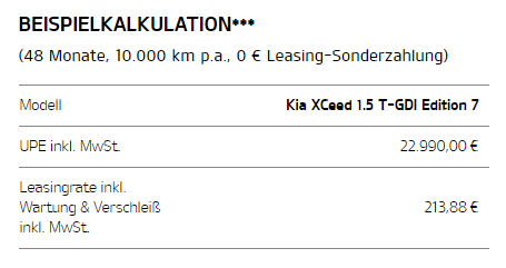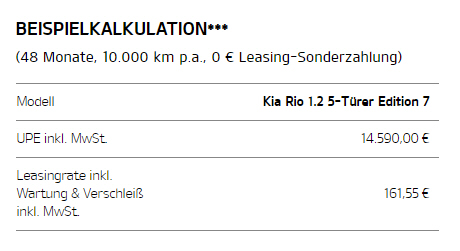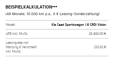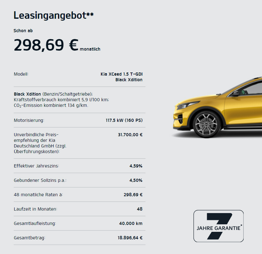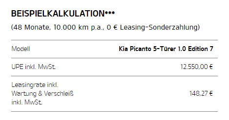 Fahrzeug-Miete inkl. KFZ-Steuern, Versicherung, Wartung, Winterräder, Hol- und Bring-Service, Mietzeit 36 Monate |