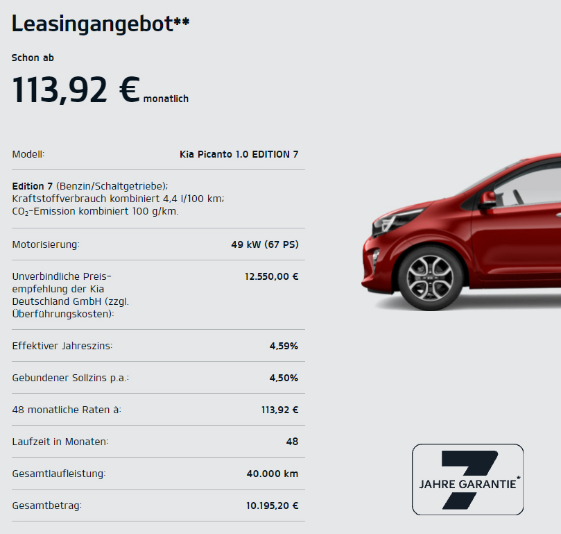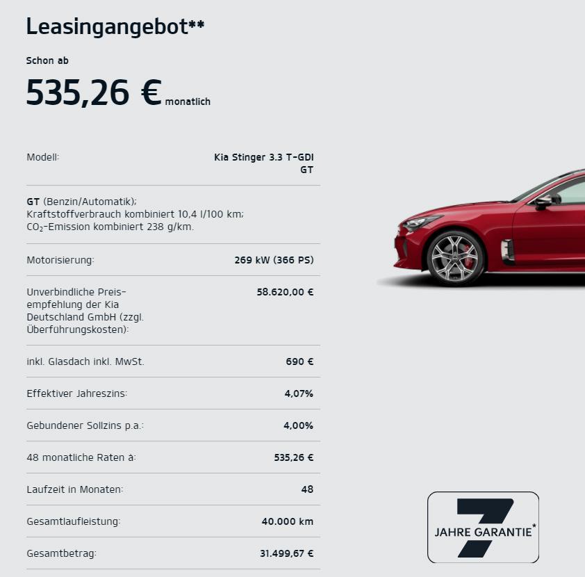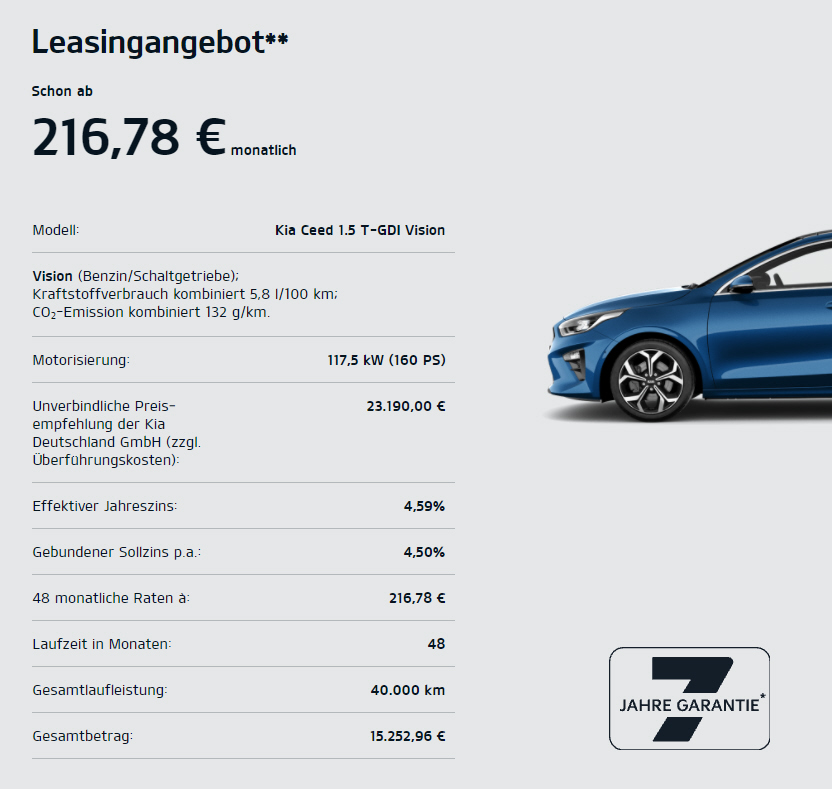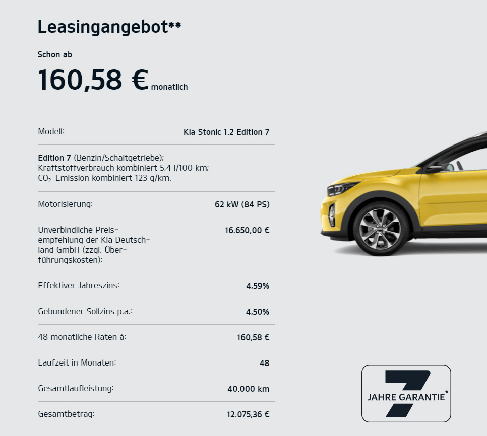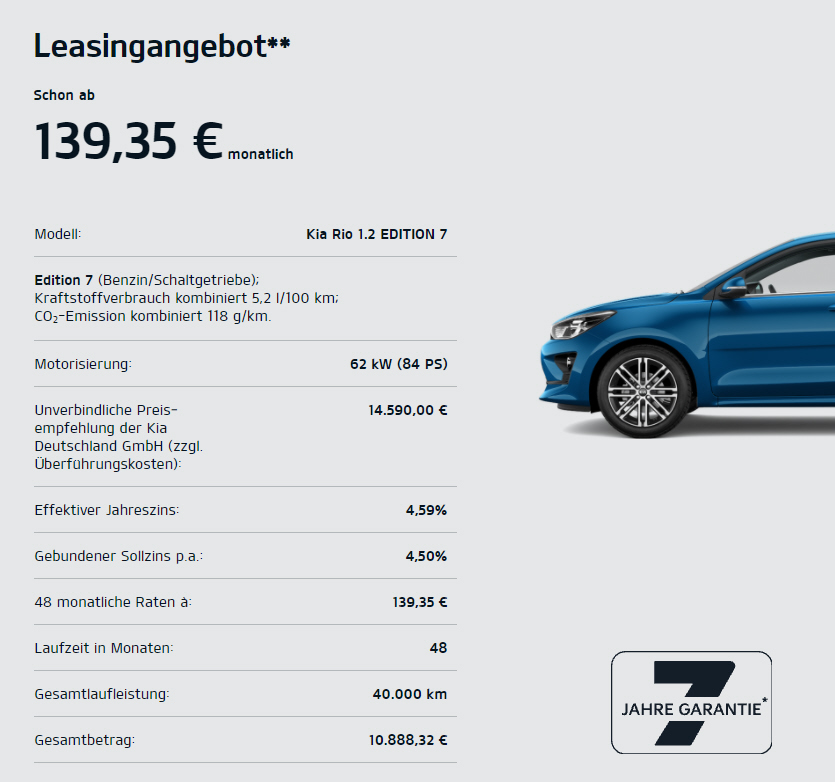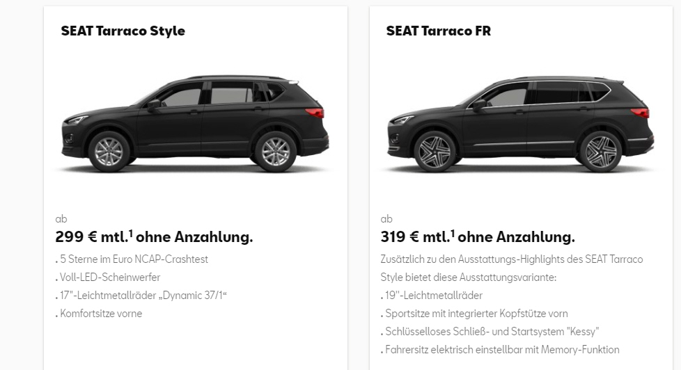 Fahrzeug-Miete inkl. KFZ-Steuern, Versicherung, Wartung, Winterräder, Hol- und Bring-Service, Mietzeit 36 Monate |