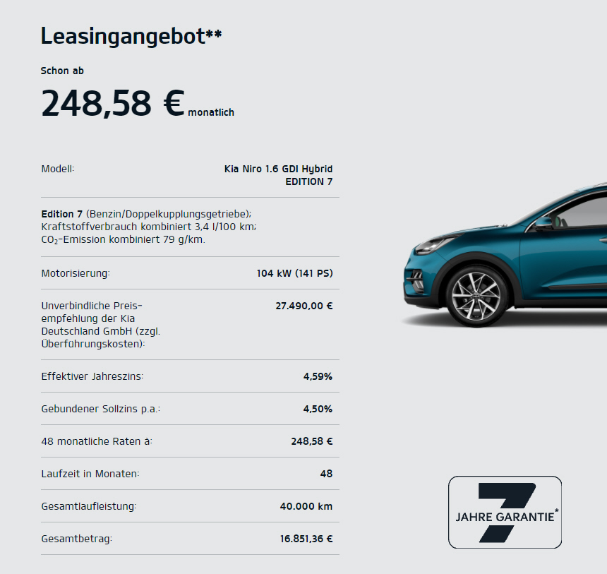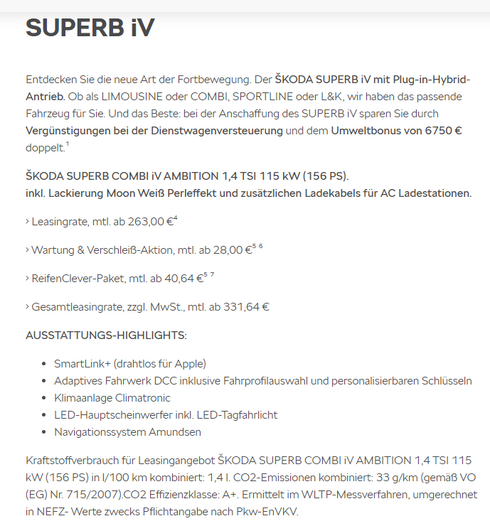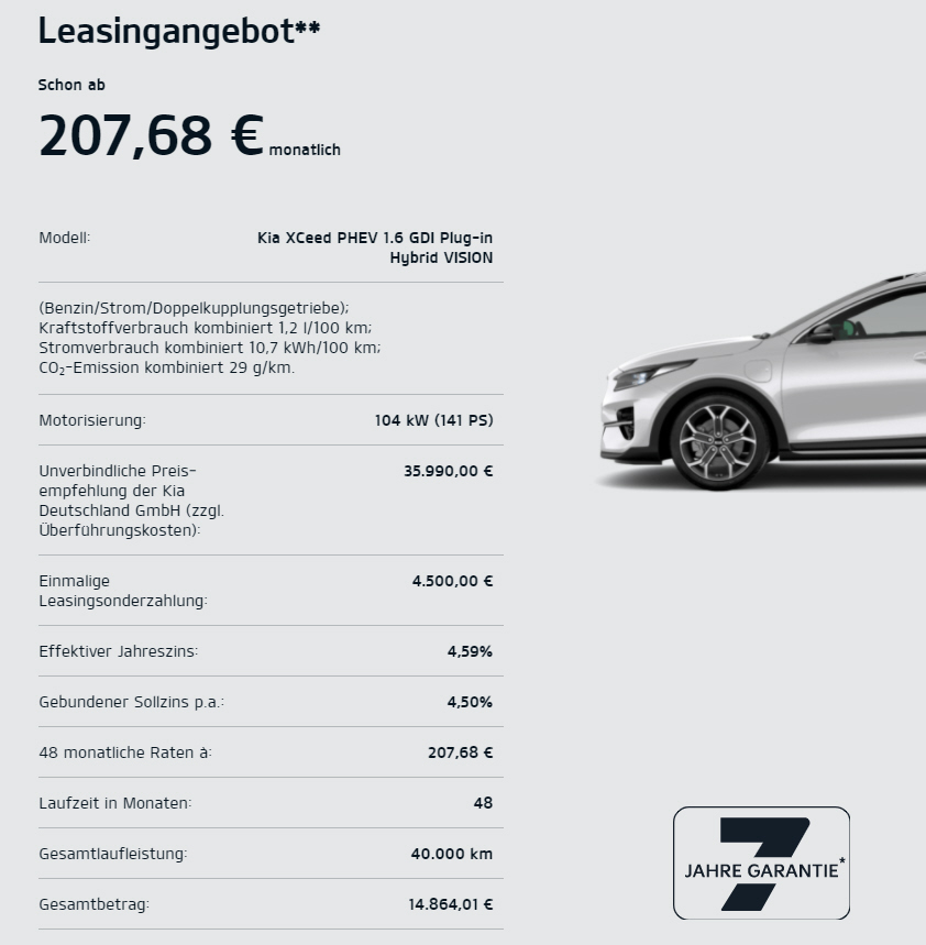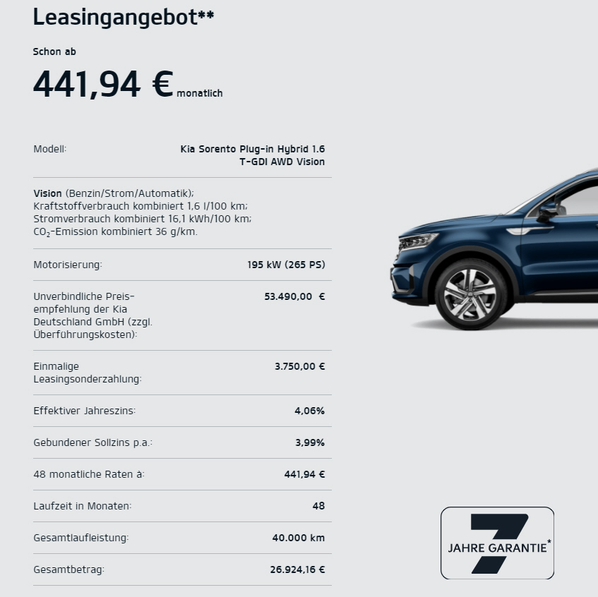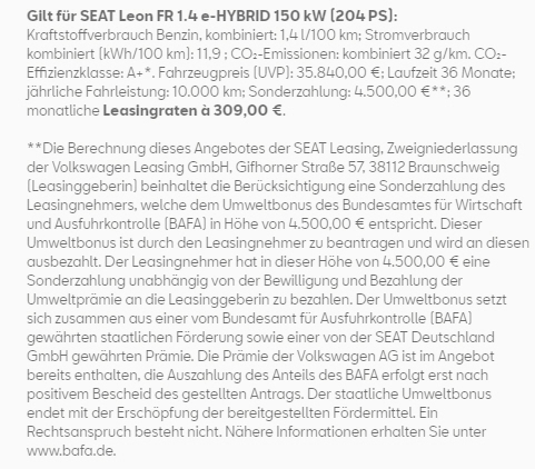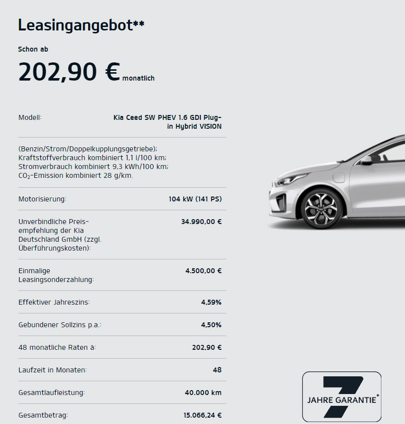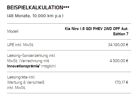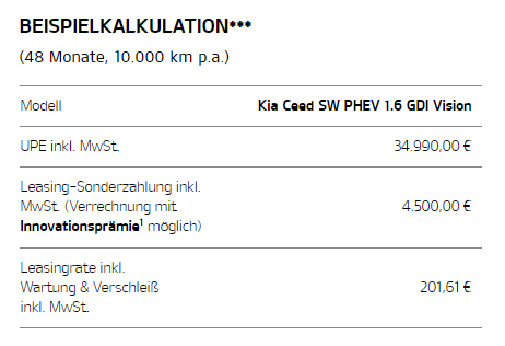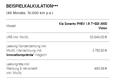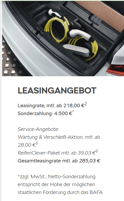 Staatliche Kaufprämie für Plug-in Hybride, Sonderleasing |