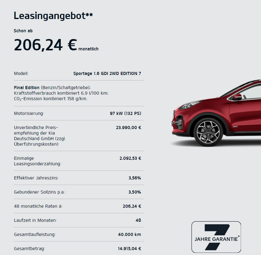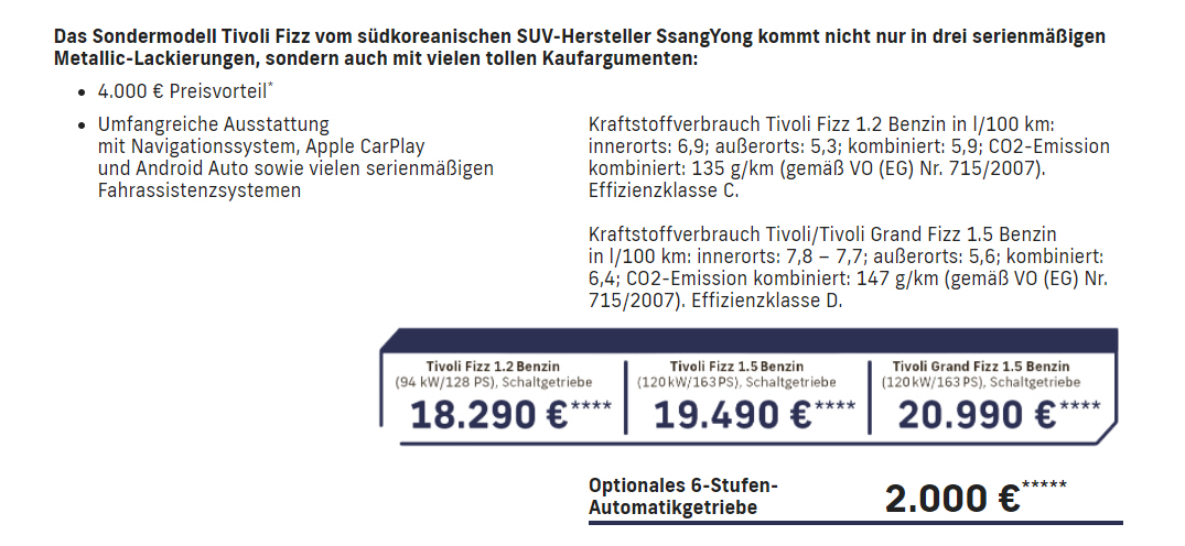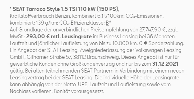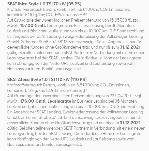 Sondermodell, Sonderleasing für Gewerbetreibende |