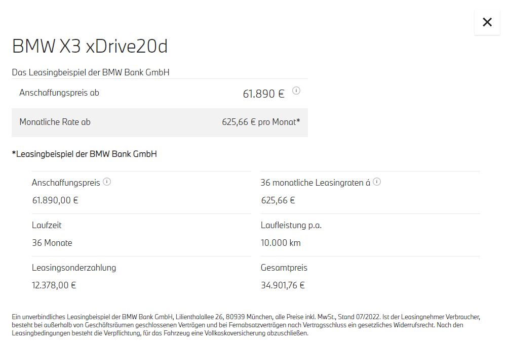 Flatrate+ (Garantieverlängerung, Mobilitätsgarantie, Wartung und Verschleiß) bei 20.000 km pro Jahr für € 47,60 monatlich |