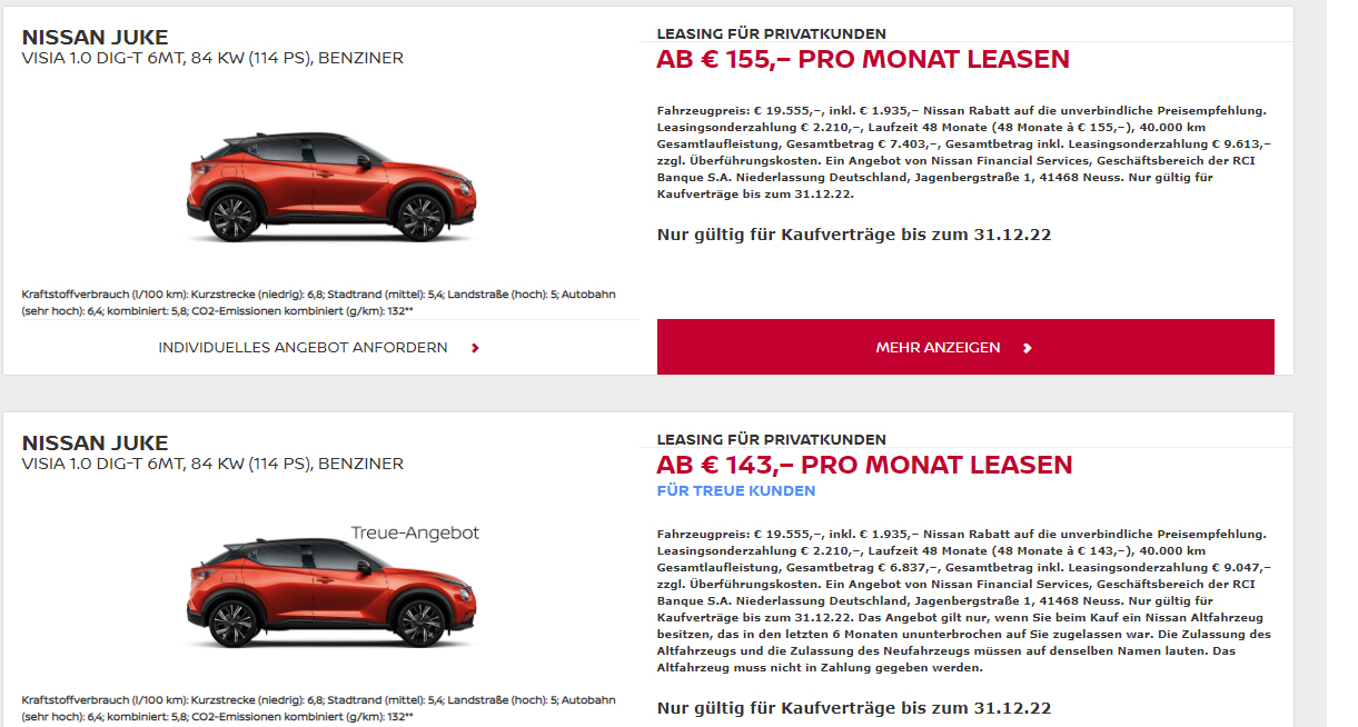 Sondermodell, Sonderleasing für Gewerbetreibende |