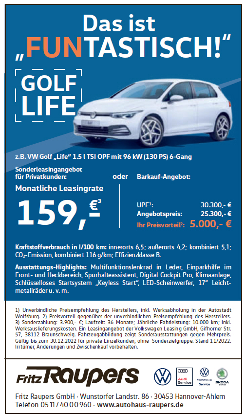 | VW Händler bewerben den Golf mit Leasingangeboten mit bis zu 70 % visuellem Restwert. | ||
