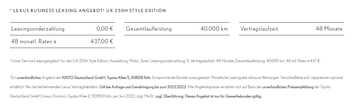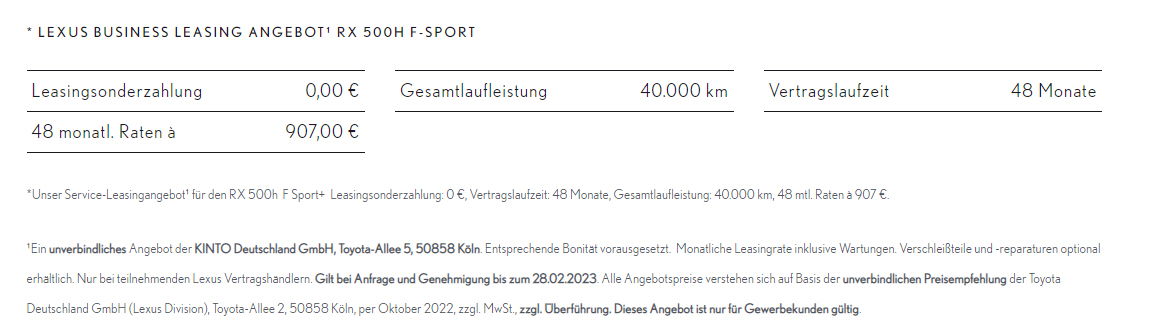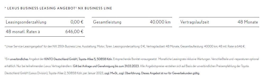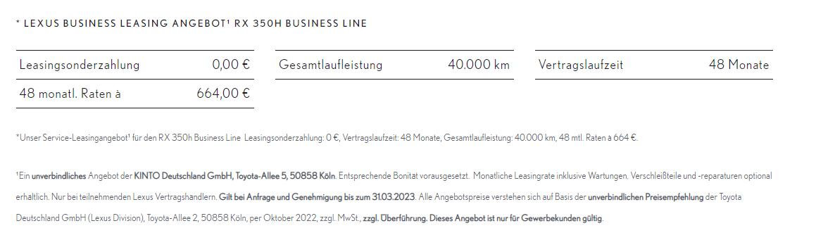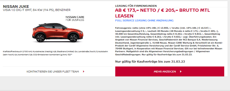 Sonderleasing für Gewerbetreibende, Wartung inkl. |