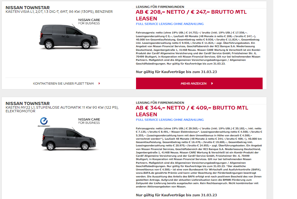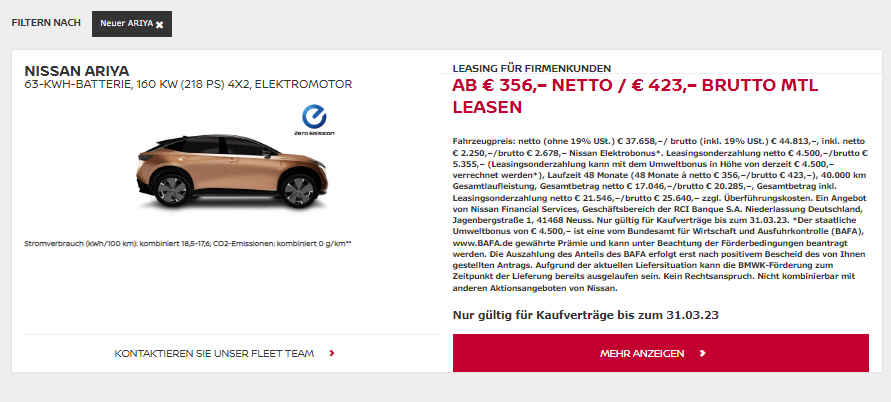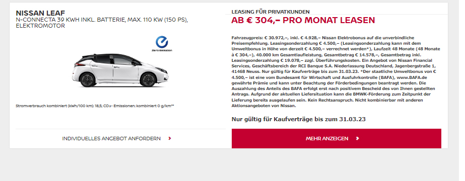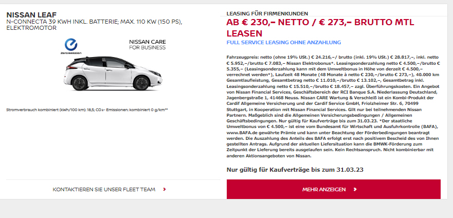 Fabrikatsnachlass bei staatlicher Kaufprämie für Elektrofahrzeuge, Sonderleasing |