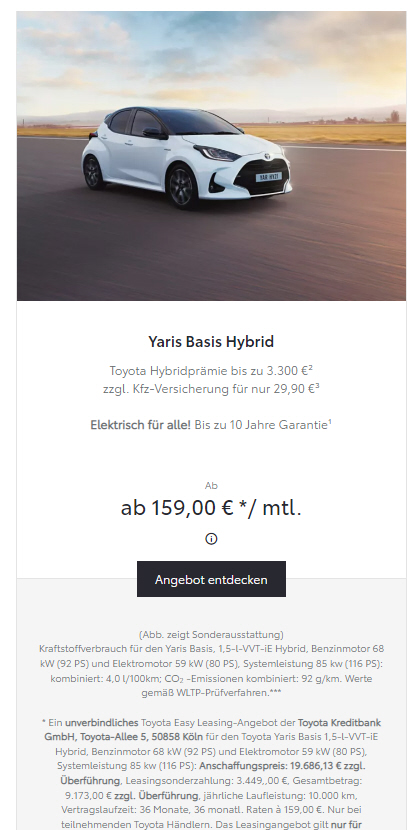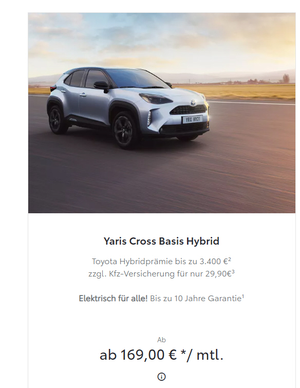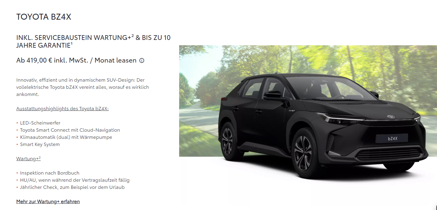 Fabrikatsnachlass bei staatlicher Kaufprämie für Elektrofahrzeuge, Sonderleasing, Service inkl. |