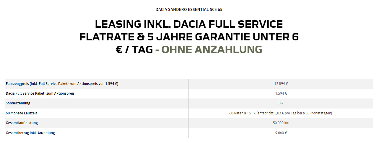 Sonderleasing mit Full Service und 5 Jahren Garantie |