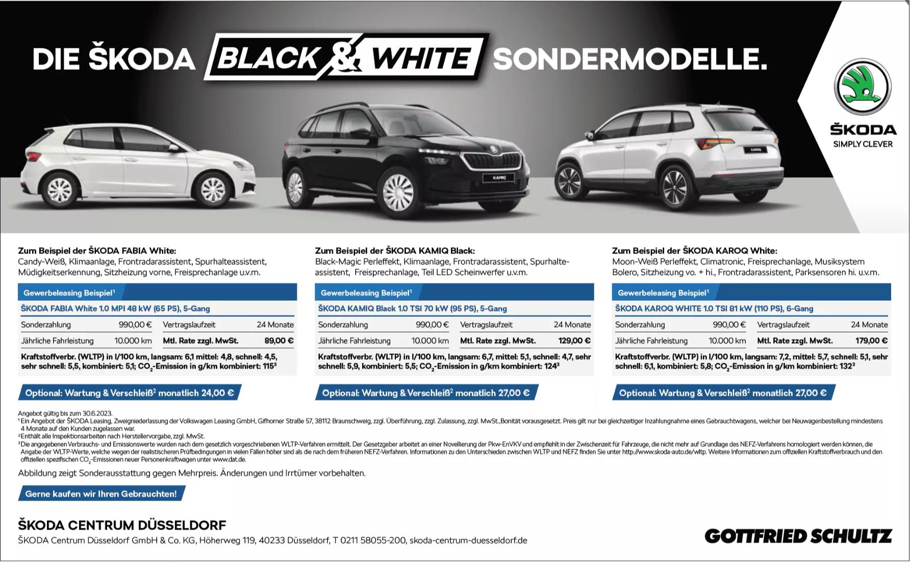 Die Schultz-Gruppe bietet Skoda Modelle im Leasing mit 24 Monaten Laufzeit an. Optional können Wartung und Verschleiß integriert werden. Der visuelle Restwert beträgt 82 %.