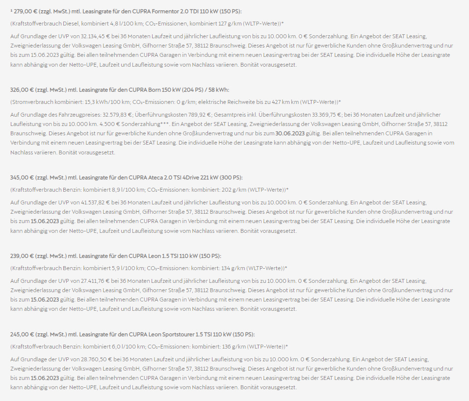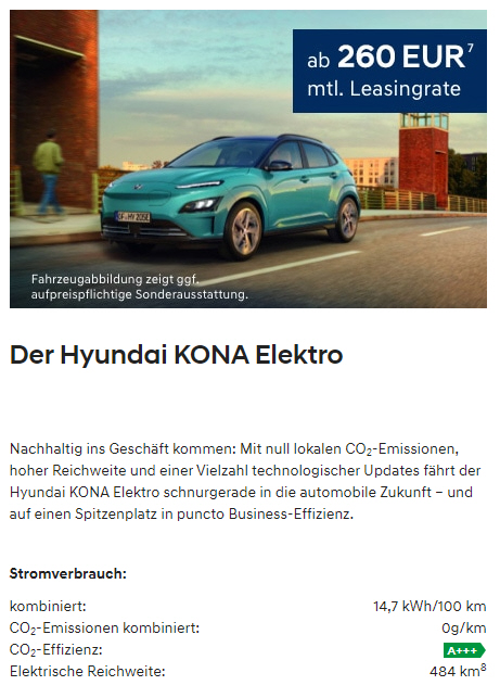 Fabrikatsnachlass bei staatlicher Kaufprämie für Elektrofahrzeuge, Sonderleasing für Gewerbetreibende |
