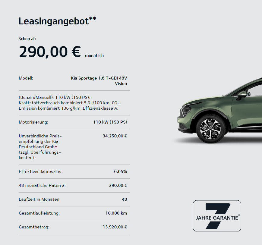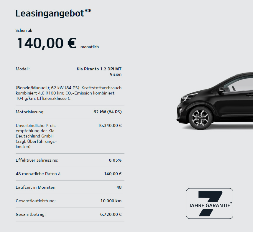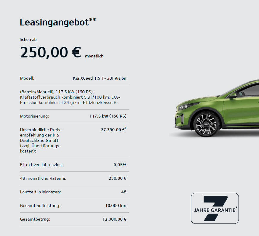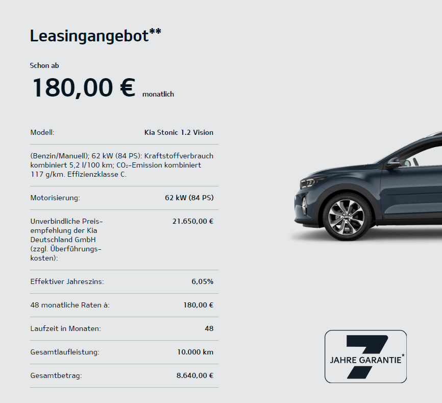 Bei Leasing oder Finanzierung über mindestens 60 Monate 5 Jahre Garantie kostenlos |