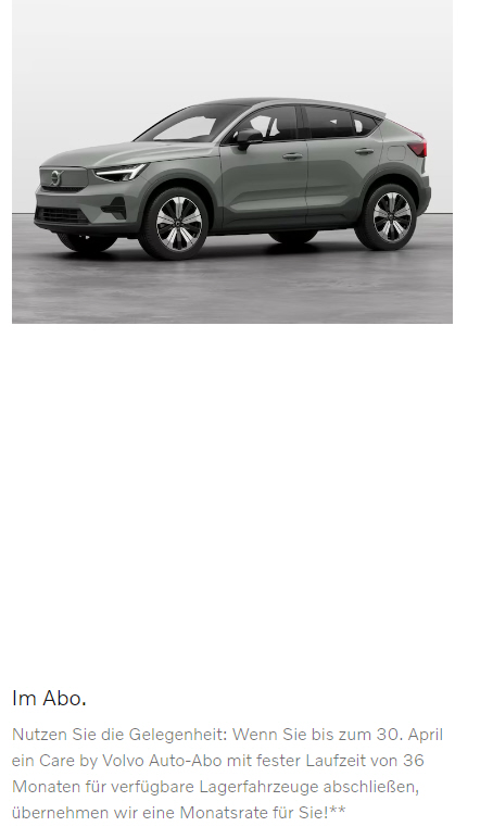Care by Volvo Abo (Miete), bei Mietzeit von 36 Monaten eine Monatsrate gratis |