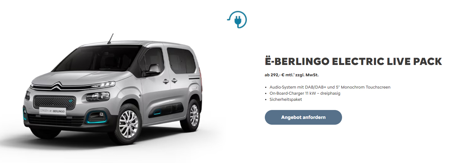 Fabrikatsnachlass bei staatlicher Kaufprämie für Elektrofahrzeuge, Sonderleasing für Gewerbetreibende |
