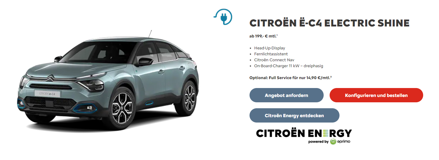 Fabrikatsnachlass bei staatlicher Kaufprämie für Elektrofahrzeuge, Sonderleasing für Gewerbetreibende, Wartung kostenlos |