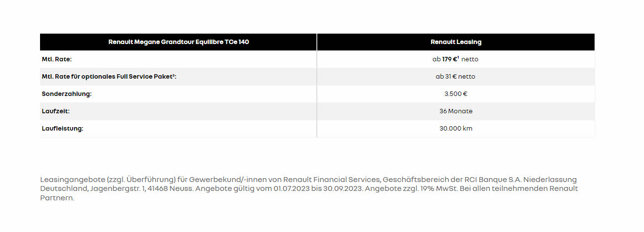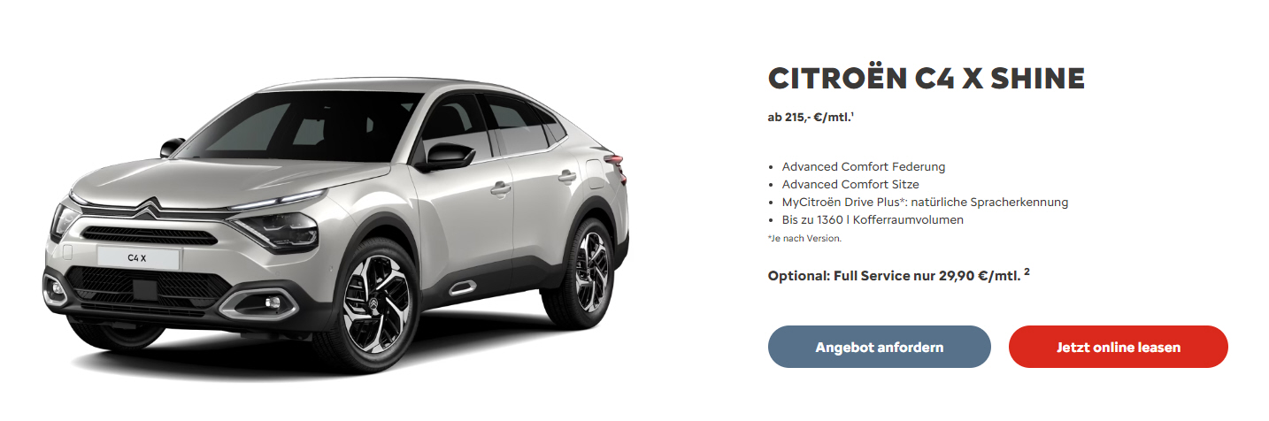 Sonderleasing, Wartung optional für € 29,90 pro Monat |