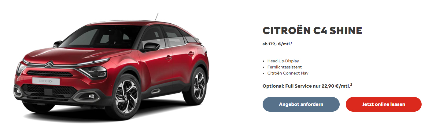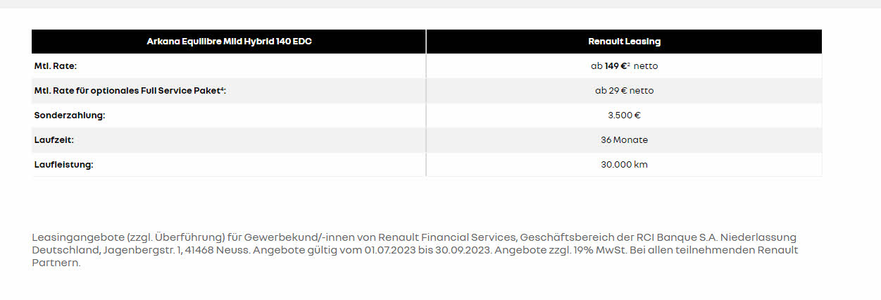 Sonderleasing, Wartung optional für € 22,90 pro Monat |