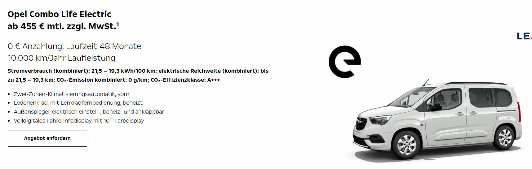 Fabrikatsnachlass bei staatlicher Kaufprämie für Elektrofahrzeuge, Sonderleasing |