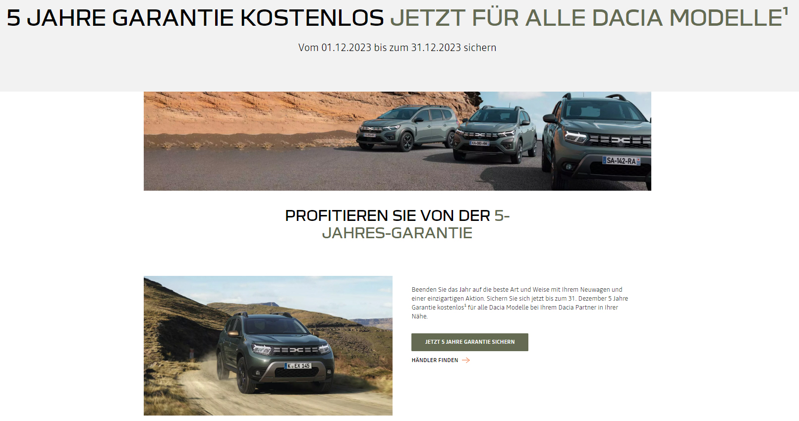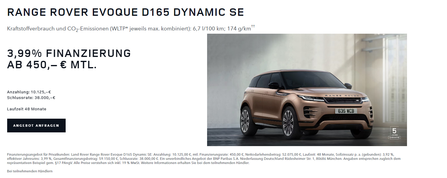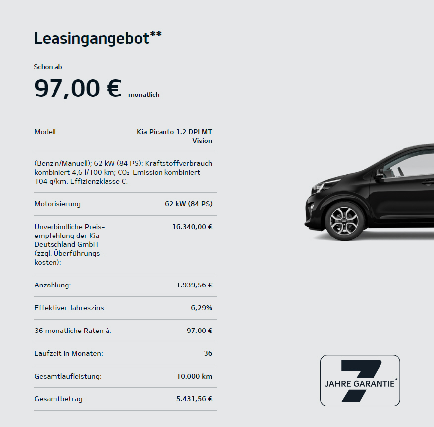 Bei Leasing oder Finanzierung 5 Jahre Garantie kostenlos |