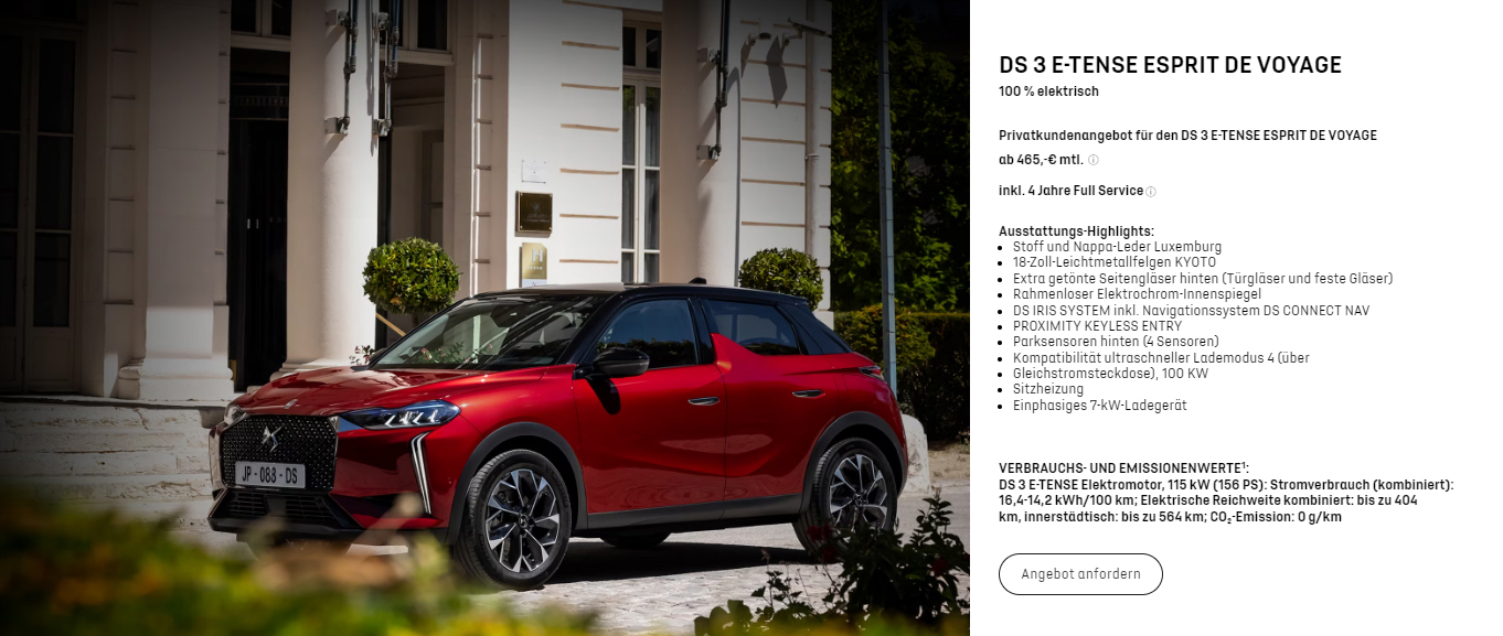 DS 3 E-Tense Esprit de Voyage Elektro |