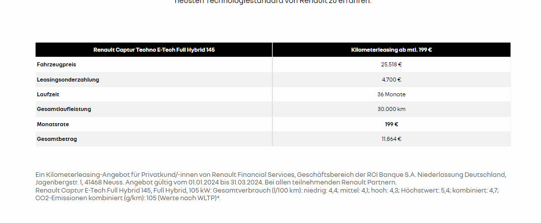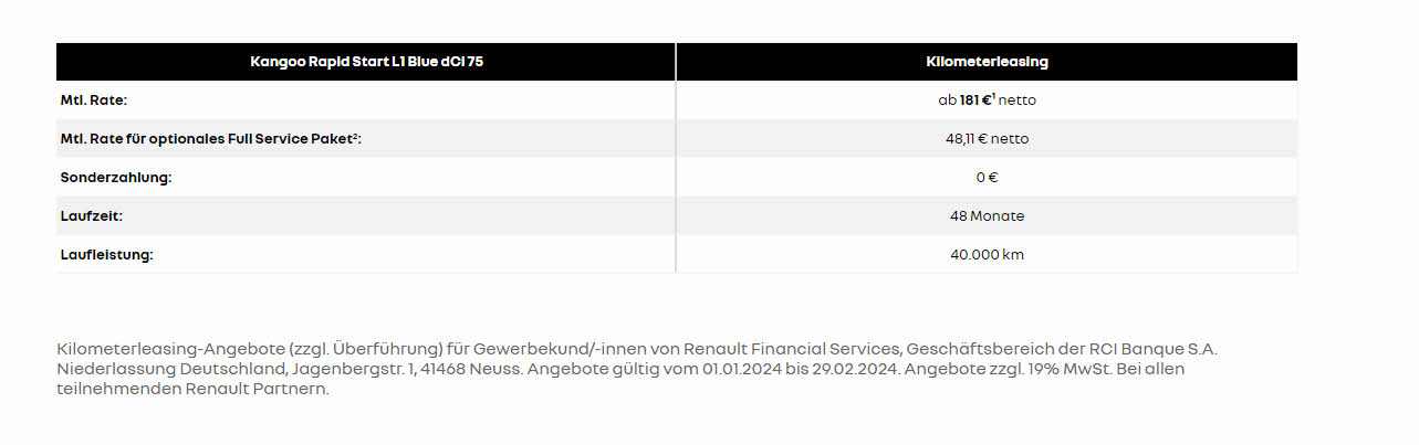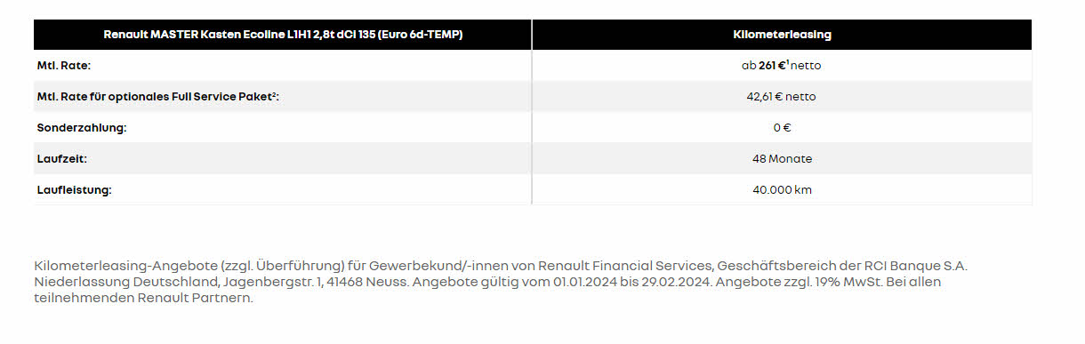 Sonderleasing, Wartung inkl. |