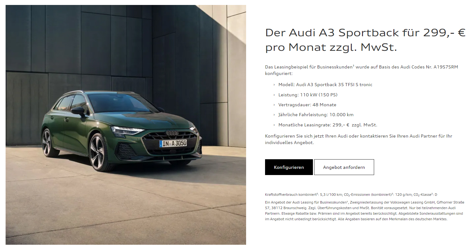 Sonderleasing für Gewerbekunden |