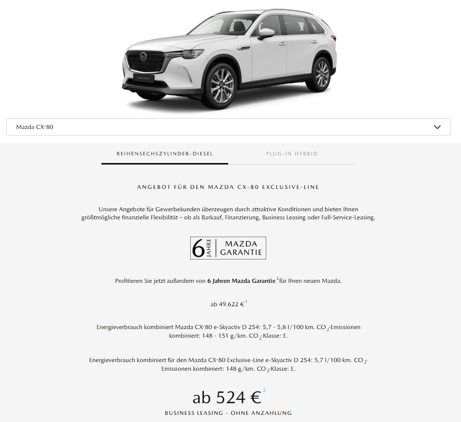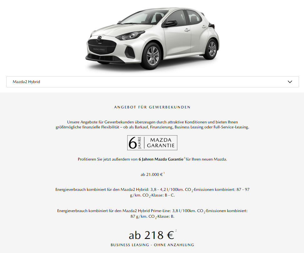Sonderleasing für Gewerbetreibende, Wartung inkl. |