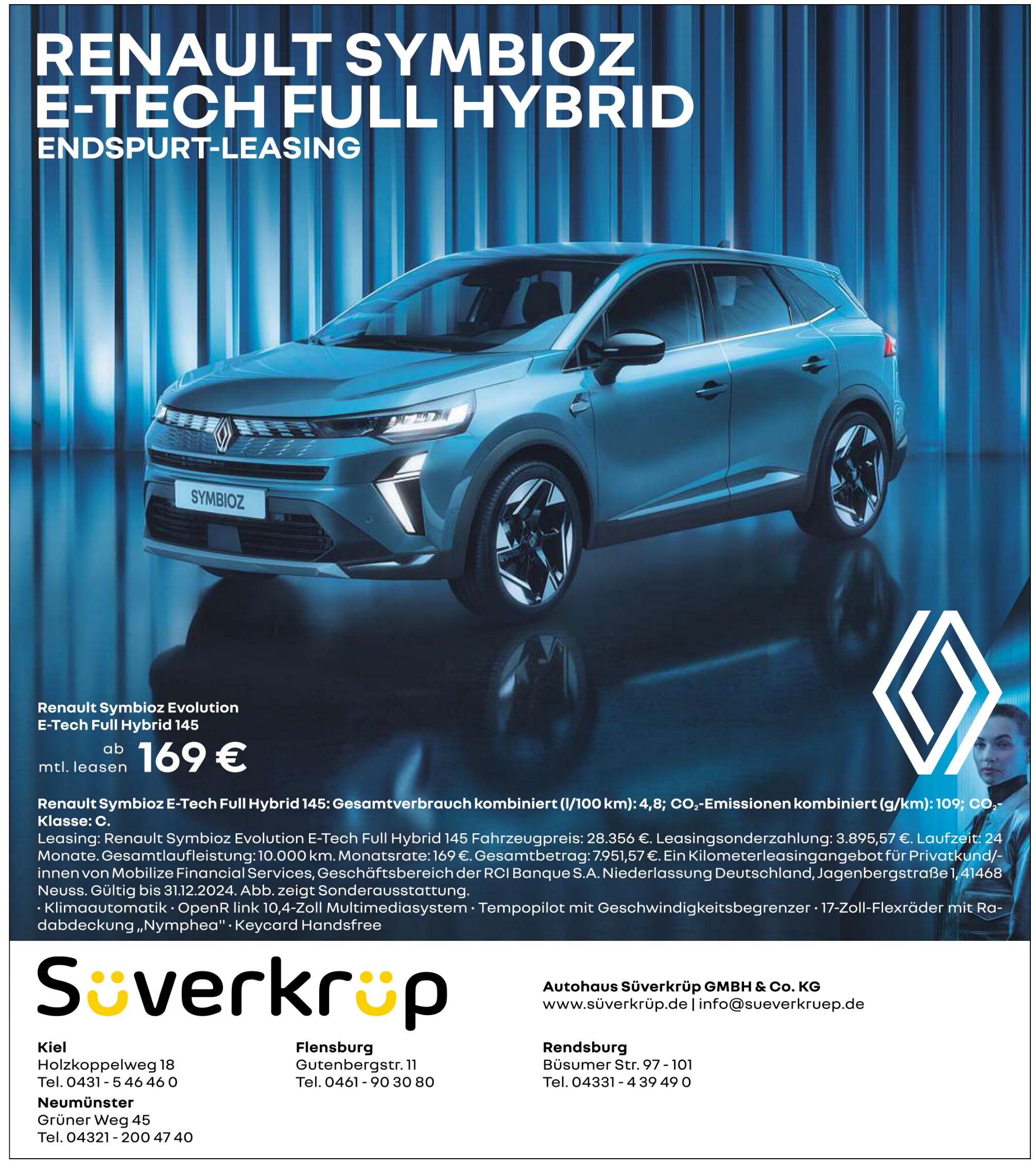 | Renault Händler bieten den neuen Symbioz im Leasing mit zum Teil über 70 % Restwert nach 24 und 36 Monaten. |